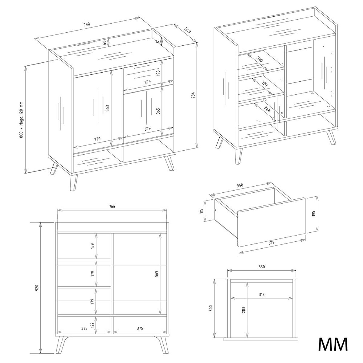 Credenza moderna con 2 ante e 1 cassetto, gambe alte in stile scandinavo. .. altro
