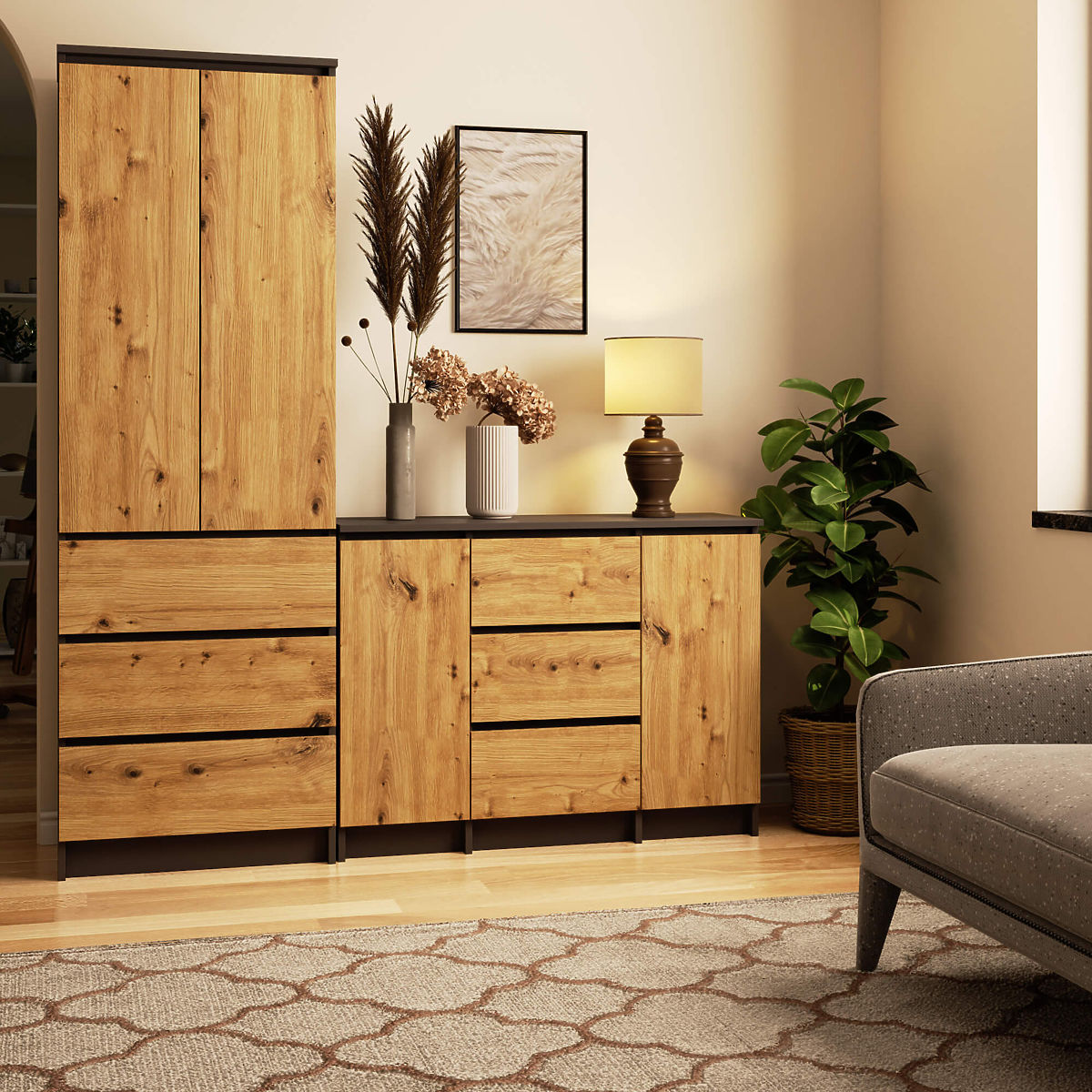 Banaby.it » Mobili per bambini / Comodini e armadi / Comodini / CREDENZA K100 2D 3SZ PK GRAFITE GRIGIO / ROVERE ARTIGIANO