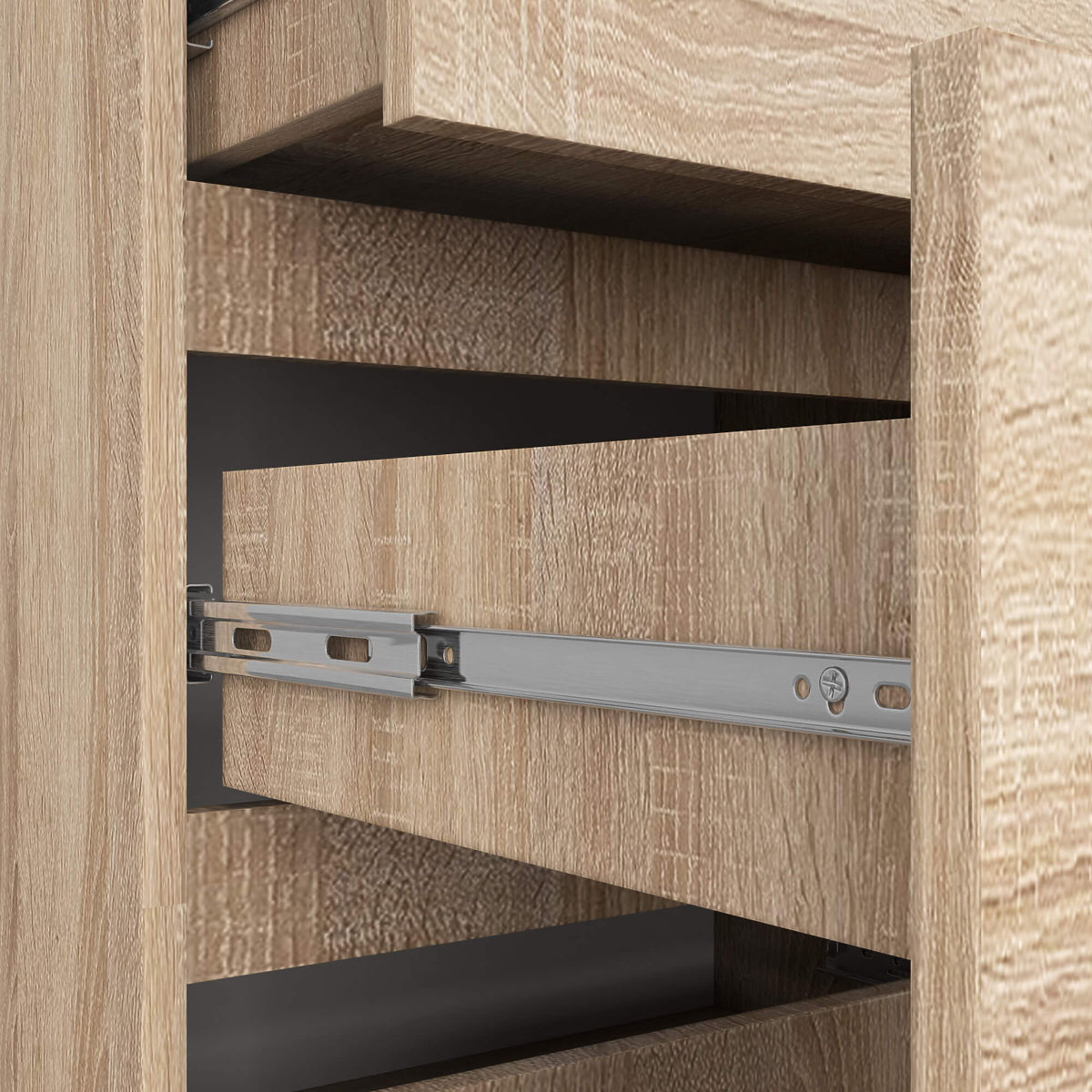 Dieci cassetti spaziosi sono il luogo ideale per riporre documenti, scatole con piccoli oggetti o abbigliamento. Questo rende il mantenimento dell'ordine in casa più facile che mai! L'estrazione e l'inserimento dei cassetti sono garantiti da guide a sfera in metallo, quindi nulla si blocca, il movimento del cassetto è fluido e silenzioso.