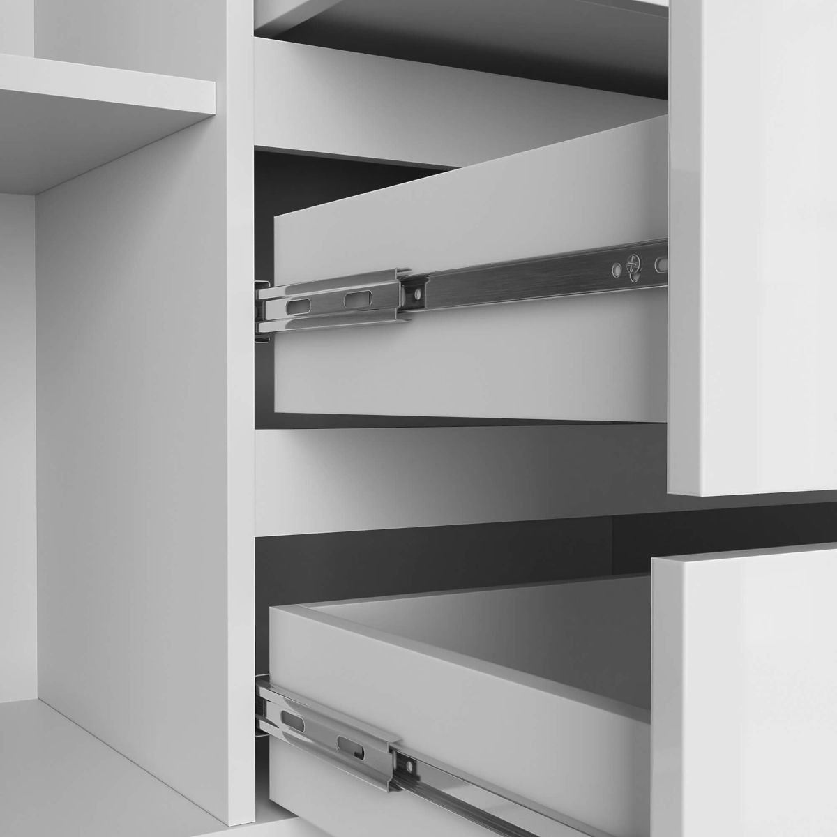 - I cassetti scorrono su guide a sfera in metallo - I bordi sono dotati di bordo ABS che garantisce un'elevata protezione contro i danni