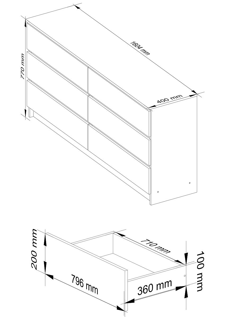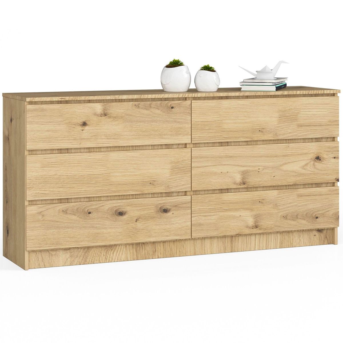 La moderna credenza K 160 cm è un prodotto che combina alta estetica e funzionalità. Il mobile è composto da sei spaziosi cassetti, il che lo rende utile in soggiorno, cameretta, ufficio, sala da pranzo, così come in molte altre stanze, permettendo di riporre molti oggetti. La credenza in un'interessante tonalità (rovere artisan) si adatta perfettamente agli interni progettati in stile industriale, moderno, scandinavo o loft, e piacerà anche agli amanti dell'atmosfera retrò. È un'offerta interessante, a cui si possono abbinare altre credenze, armadi, scaffali e scrivanie progettati nello stesso stile. La forma minimalista combinata con l'alta qualità sicuramente attirerà molti clienti.