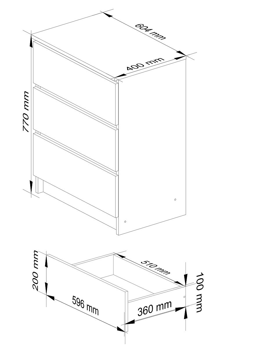 - I cassetti scorrono su guide a sfera metalliche - Bordi rivestiti con bordo ABS che garantisce un'elevata protezione contro i danni