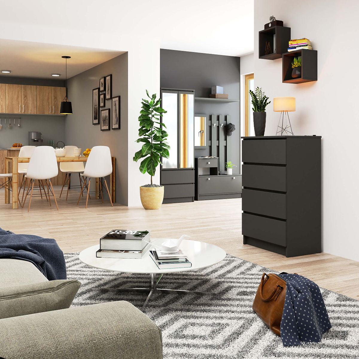 Credenza in grafite grigio con 4 cassetti e bordi ABS. .. altro