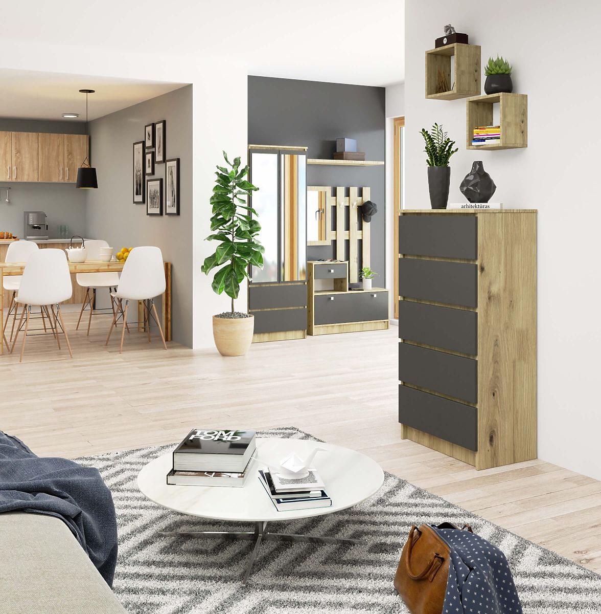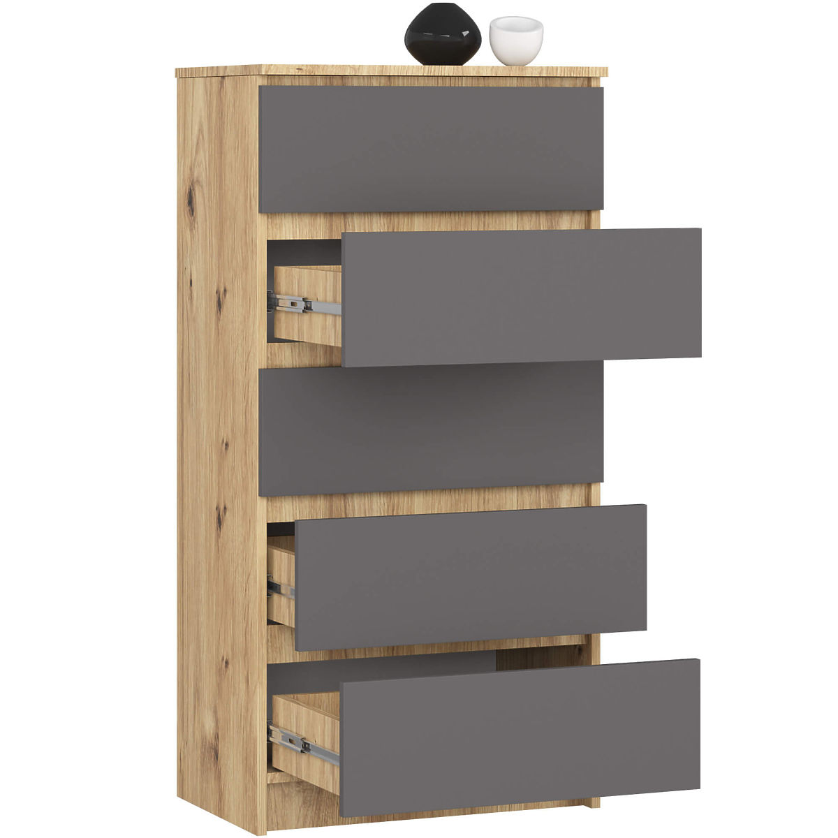 Credenza a 5 cassetti in rovere Artisan e grafite grigio. .. altro