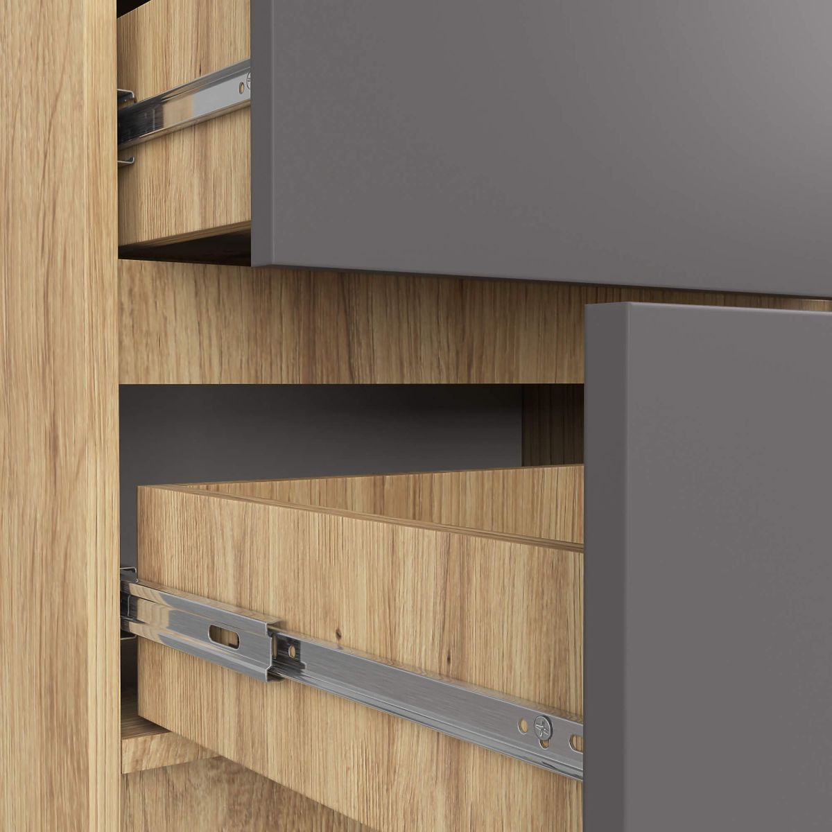 - Cassetti scorrevoli su guide a sfere in metallo - Bordi rivestiti con bordo ABS per garantire alta protezione contro i danni
