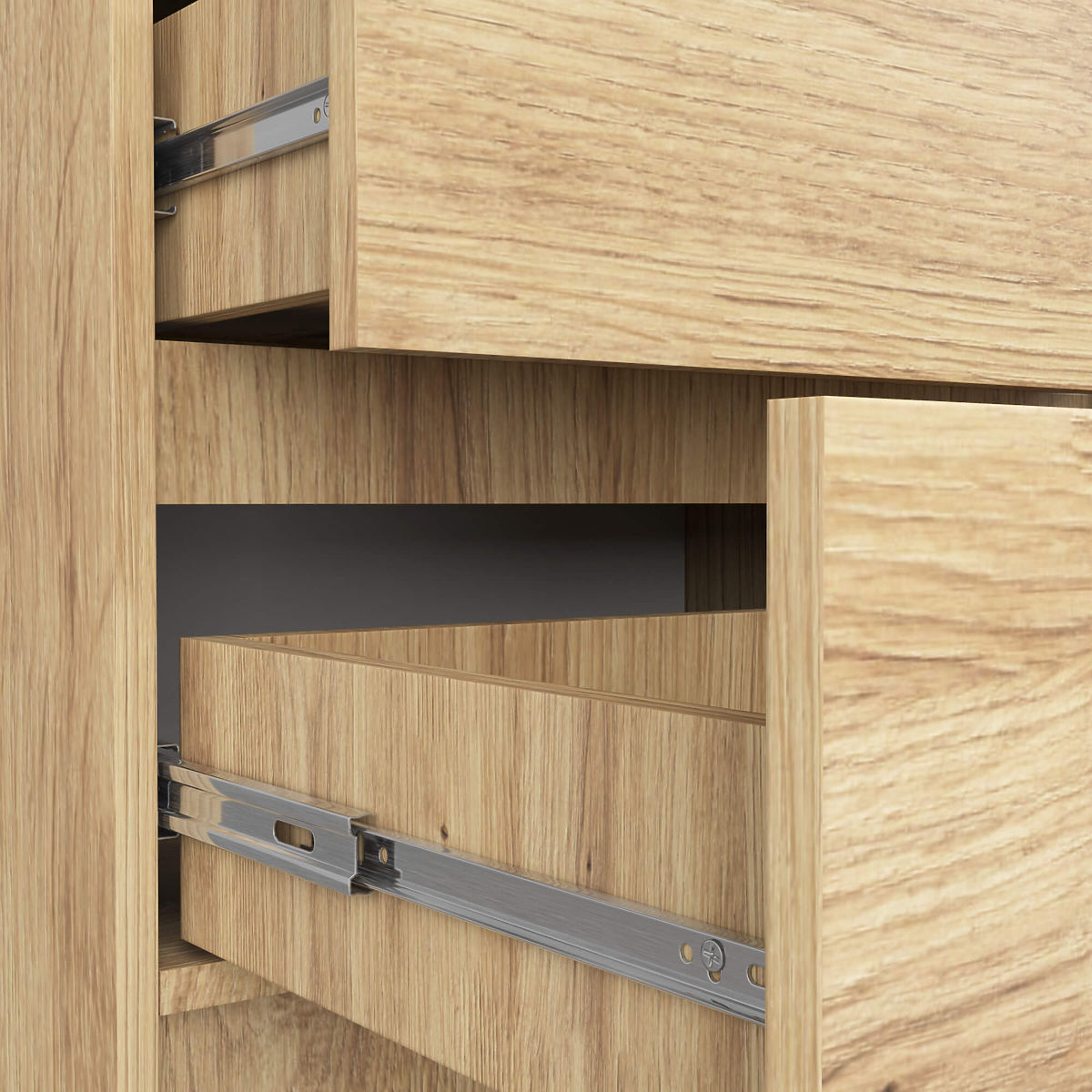 - Cassetti scorrevoli su guide a sfera in metallo - Bordi rivestiti con bordo ABS che garantisce alta protezione contro i danni