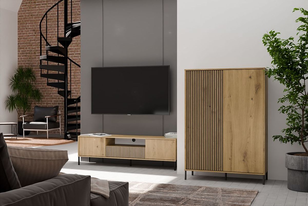 Banaby.it » Mobili per bambini / Comodini e armadi / Comodini / Vetrina KAMARO 2DD SLIM/LISCIO ROVERE ARTIGIANO Frontale Lamellare Scanalato + Classico