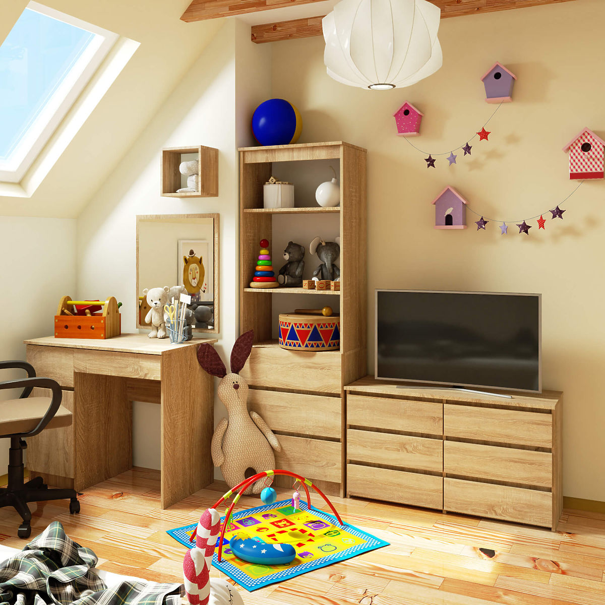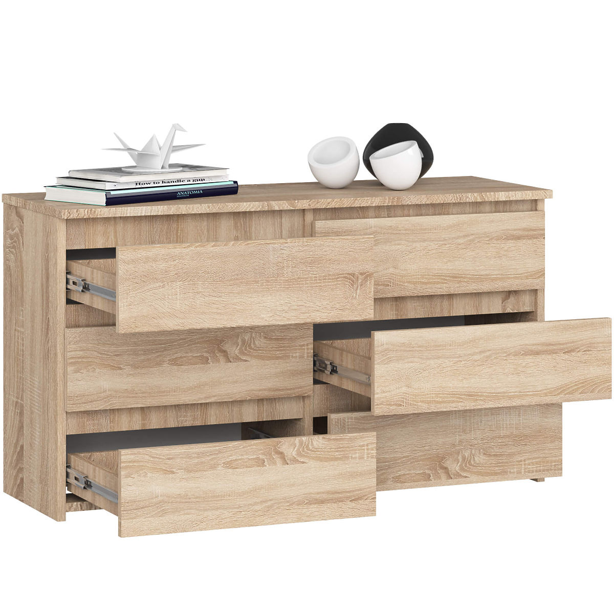 Nell'arredamento si pone particolare attenzione alla funzionalità dei prodotti e ai loro alti valori estetici. Un ottimo esempio è la credenza CL 100 cm. Questo pratico mobile è realizzato in pannello laminato resistente all'abrasione, garantendo durata e resistenza. Nei sei spaziosi cassetti si possono riporre vari libri, documenti o piccoli oggetti. Alcuni dei nostri clienti scelgono di utilizzarla per riporre abiti o biancheria intima. La credenza quercia sonoma ha un design elegante. La forma semplice e l'esecuzione elegante si adattano sia agli interni classici ed eleganti, sia a quelli romantici. Questo eccezionale mobile si adatta perfettamente a un soggiorno elegante o a una camera da letto accogliente. Viene anche utilizzato come parte di un guardaroba o di un ingresso. La credenza con 6 cassetti è apprezzata sia dai privati che dagli imprenditori. Grazie all'aspetto impeccabile e alla straordinaria capacità, è perfetta come parte dell'arredamento degli uffici.
