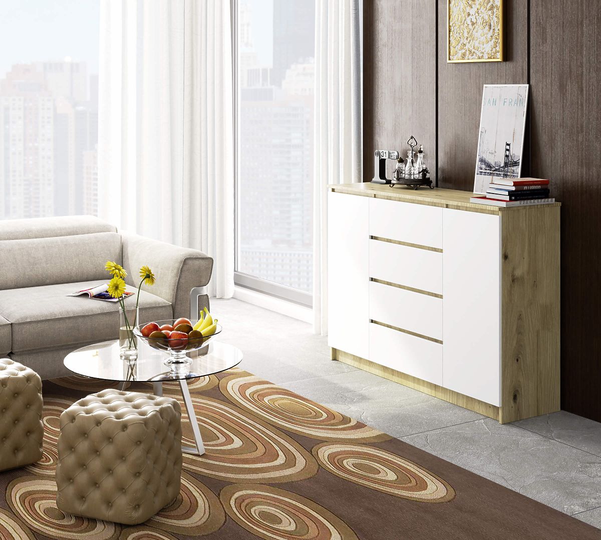 Credenza con 2 porte e 4 cassetti in Rovere Artisan e Bianco. .. altro