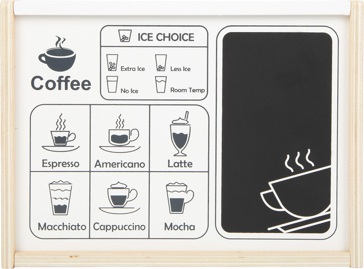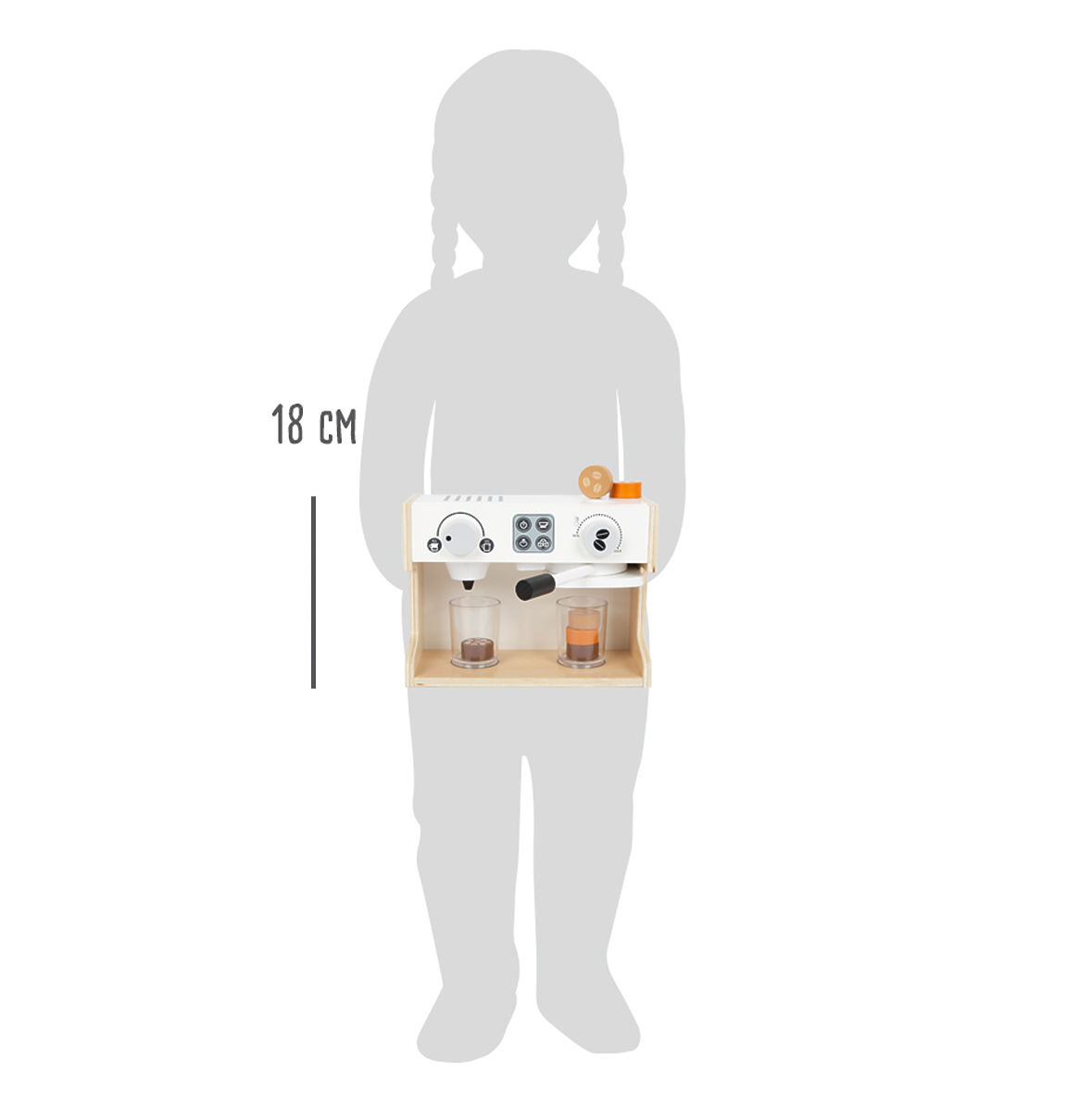 Ci sono giovani baristi e bariste tra noi? Con questa macchina da caffè professionale in legno, puoi preparare un caffè perfetto anche nella tua cucina giocattolo. I due quadranti cliccano quando vengono girati e la parte con il filtro del caffè è rotante. Puoi preparare diversi tipi di caffè. Sul retro c'è una lavagna su cui puoi scrivere il tuo menu del giorno. Una moderna macchina da caffè con montalatte, grazie alla quale puoi bere il caffè come i tuoi genitori! Questo giocattolo favorisce lo sviluppo della motricità e il gioco di ruolo. Caratteristiche principali: manopole rotanti che cliccano, lavagna per gessetti per il menu del giorno, supporta il gioco di ruolo attivo, sviluppo della motricità