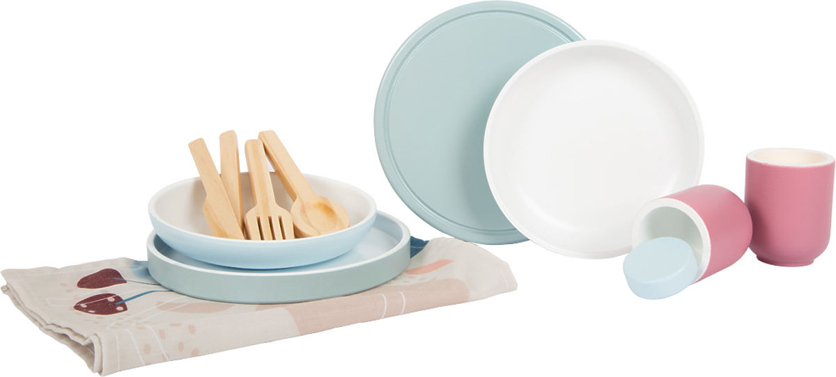 Set moderno di stoviglie che include piatti, tazze, posate e tovagliette per due persone. Realizzato in legno robusto e resistente di alta qualità, progettato per durare nel tempo. Offre ulteriori effetti educativi con tovagliette stampate che mostrano come apparecchiare correttamente la tavola. Aspetto moderno con forme lineari e combinazione di legno naturale con colori di tendenza come il blu fumo e il rosso bacca. Perfetta armonia di colore e design con la collezione Tasty, dove troverete una cucina per bambini e altri prodotti da cucina. Per un divertimento particolarmente realistico nei giochi di ruolo nella cucina dei bambini. Supporta lo sviluppo della motricità fine, delle abilità sociali e di altre competenze quotidiane. Grazie al design equilibrato e allo schema di colori moderno, si adatta particolarmente bene agli ambienti moderni della stanza dei bambini e del soggiorno. Caratteristiche principali: Supporta lo sviluppo della motricità fine e delle abilità sociali Include 12 pezzi