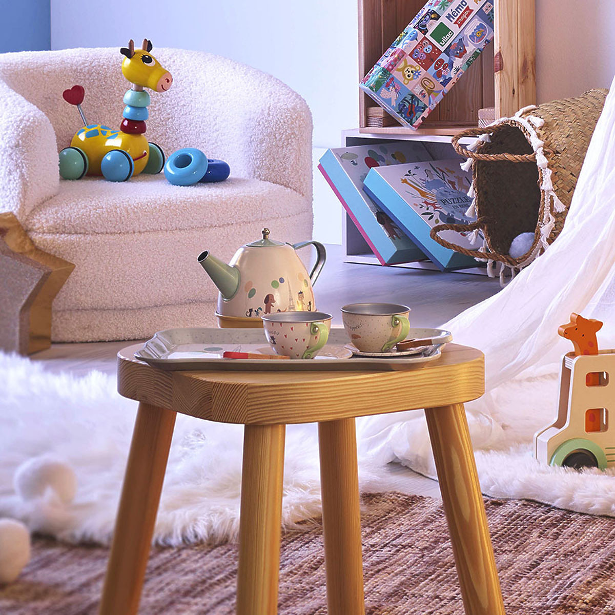 Con il magico servizio da tè, i bambini sviluppano la fantasia, imparano le regole del servizio e il comportamento sociale. La teiera è dotata di un carillon a carica che, quando inclinata, riproduce una delicata melodia di compleanno "Tanti auguri a te". Il set da 14 pezzi è illustrato da Sarah Betz con colori delicati che evocano la città di Parigi. È realizzato in metallo leggero e molto resistente. Un ottimo modo per incoraggiare il gioco creativo e fantasioso. Grazie alla pratica valigetta, è anche un ottimo compagno di viaggio. Questo giocattolo non richiede batterie, la musica è suonata da un carillon meccanico che si carica con una chiave fissata sotto la teiera. Caratteristiche principali: vassoio, teiera e 4 tazze con piattini, riproduce la melodia "Tanti auguri a te", pratica valigetta per un facile trasporto, realizzazione in metallo resistente e leggero, design di Sarah Betz.