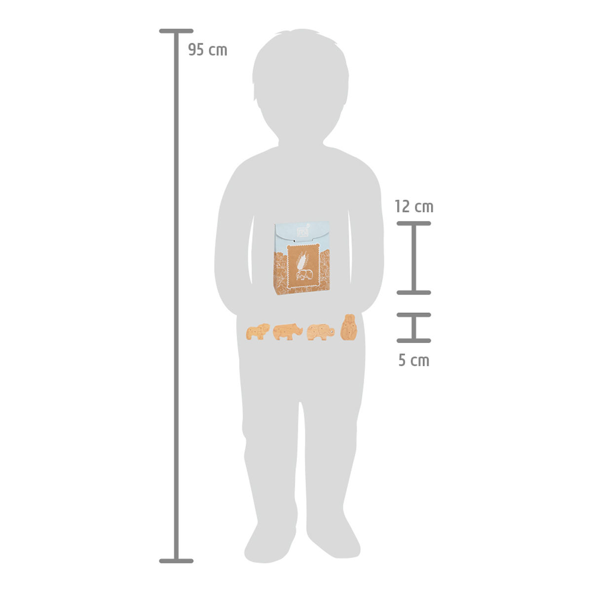 Animali della savana come biscotti! Questi 8 robusti biscotti a forma di animali sono realizzati in legno. Arricchiranno ogni bancarella di vendita per bambini o cucina giocattolo. Sono confezionati in un robusto imballaggio di cartone naturale. Il contenuto della confezione è illustrato sul retro dell'imballaggio. L'aspetto naturale e realistico di questi biscotti li rende i preferiti dei bambini. Nella confezione ci sono 2 leoni, 2 scimmie, 2 rinoceronti, 2 elefanti. Il giocattolo offre un divertimento duraturo per i bambini, soprattutto in combinazione con altri prodotti della linea "Fresh". Principali caratteristiche: otto robusti biscotticomplemento ideale per bancarelle di vendita e cucine per bambini biscotti realistici a forma di animali confezionati in cartone non trattato la scatola può essere facilmente aperta e richiusa compatibile con altri prodotti della linea "Fresh"