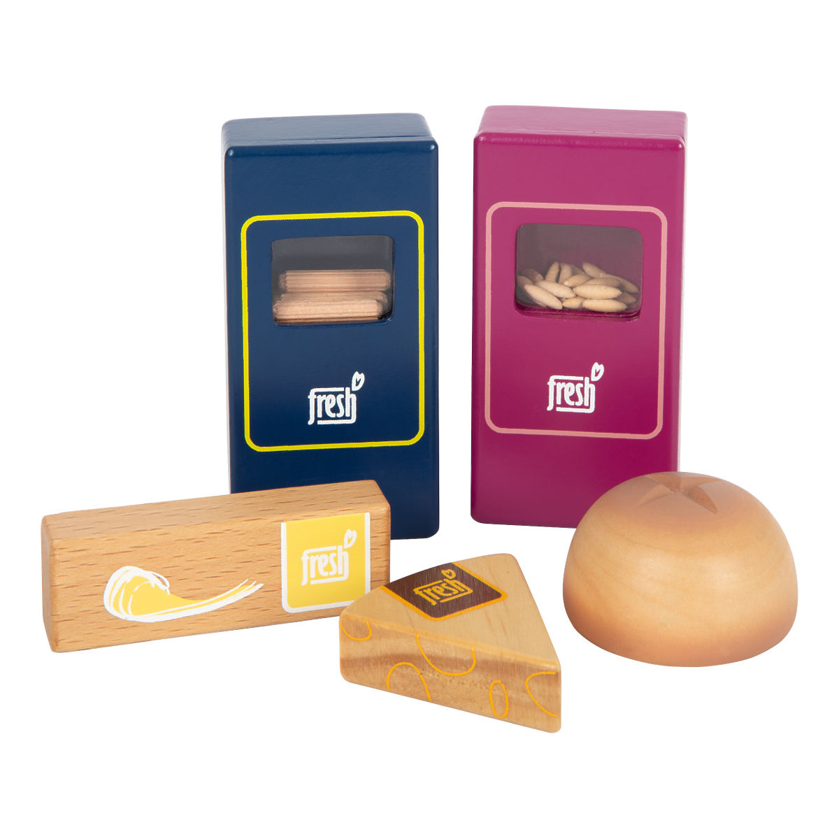 Pasti senza carne nella cucina dei bambini! Questo ampio set di cibo immaginativo in legno entusiasmerà i bambini per un gioco di ruolo realistico, nel tema di una dieta vegetariana equilibrata. Le confezioni di riso e pasta hanno una finestra trasparente, la borsa di cotone è stampata con la piramide alimentare - i bambini impareranno facilmente a mangiare correttamente! Latte, burro, formaggio, olio, uova, riso, pasta, pane, mela, pomodoro, cetriolo e carota. Un'ampia selezione di alimenti vegetariani che si adatteranno perfettamente alle cucine e ai chioschi dei bambini. Una bottiglia d'acqua e una bustina di tè completano magnificamente questo set. Caratteristiche principali: set di alimenti in legno a tema dieta equilibrata e vegetariana, confezionato in una borsa di cotone stampata con la piramide alimentare, ampio set di alimenti vegetariani: latte, burro, formaggio, olio, uova, riso, pasta, pane, mela, pomodoro, cetriolo, carota, bottiglia d'acqua in legno, bustina di tè in legno e feltro, confezioni realistiche di pasta e riso con plexiglass (emette un suono quando agitato), i bambini imparano le abitudini alimentari in modo divertente, confezionato in un imballaggio riutilizzabile, i bambini imparano qualcosa di nuovo sull'ecologia durante il gioco, gli alimenti sono facilmente comprensibili anche dai più piccoli, compatibile con altri prodotti della linea "Fresh"