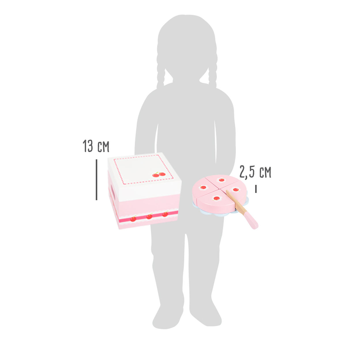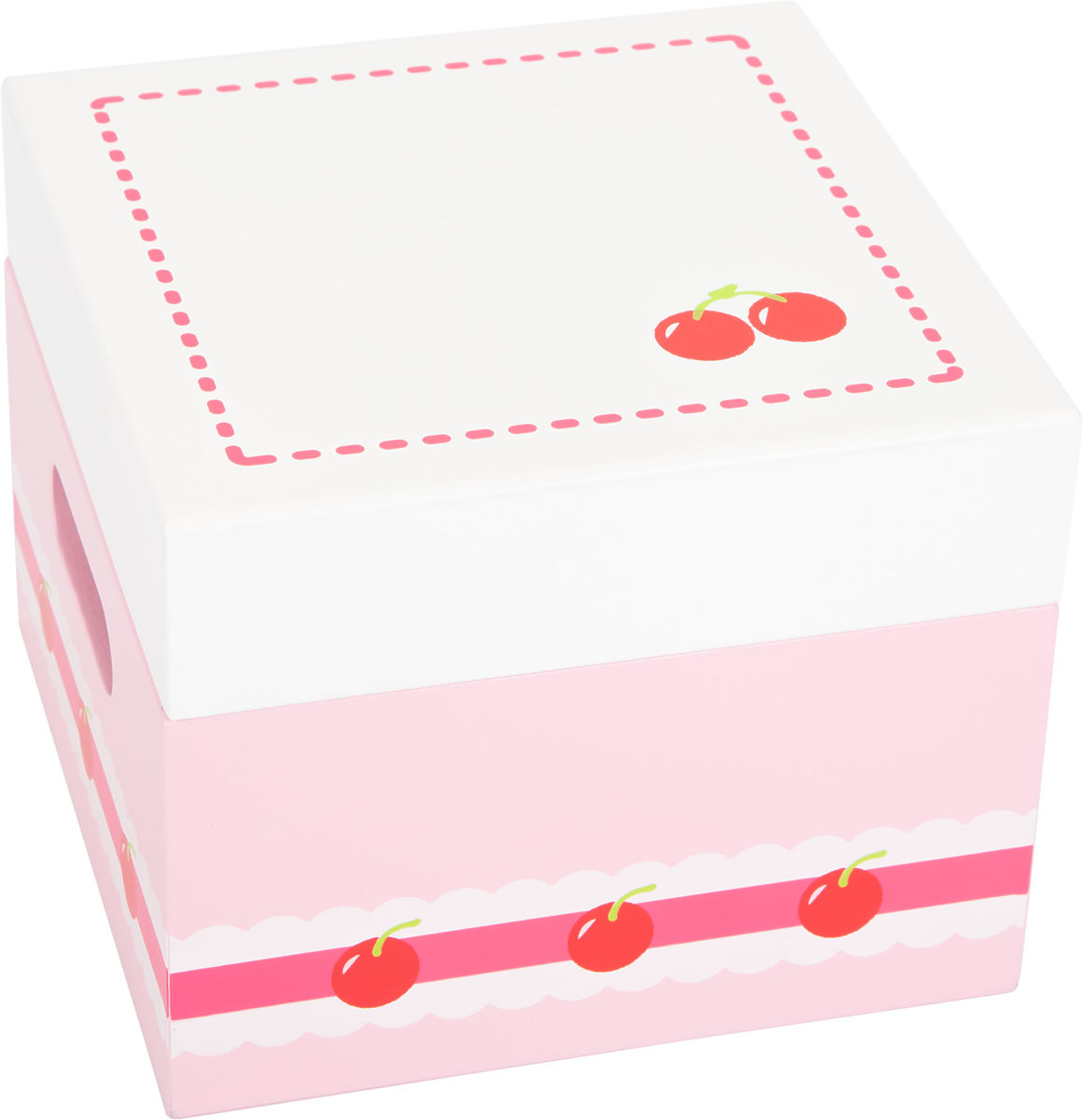 Dolci concessi! Con questa scatola di legno piena di prelibatezze, i bambini si divertiranno un mondo. Che siano muffin, torta, biscotti, banana o fragola, ognuno troverà qualcosa di suo gradimento. Il set è completato da due tazze, piattini e posate. La scatola può essere facilmente chiusa e ha aperture laterali per una presa più semplice. Questo giocattolo aiuta i bambini a sviluppare abilità sociali e può essere aggiunto alla cucina giocattolo, inoltre allena la motricità. La torta può essere tagliata a fette, i pezzi sono tenuti insieme da velcro. Principali caratteristiche: Scatola con coperchio con bella illustrazione, Tazze, piatti, posate, Torta, muffin, frutta