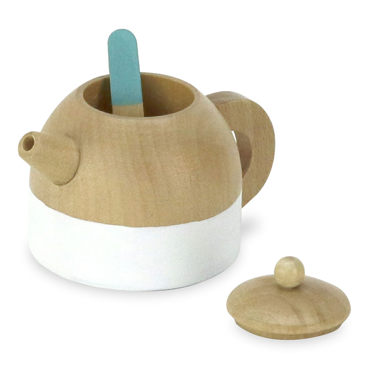 È l'ora del tè! I bambini saranno felici di invitare i loro peluche a giocare con questo grazioso set da tè in legno dai colori delicati. Gradireste una torta .. altro