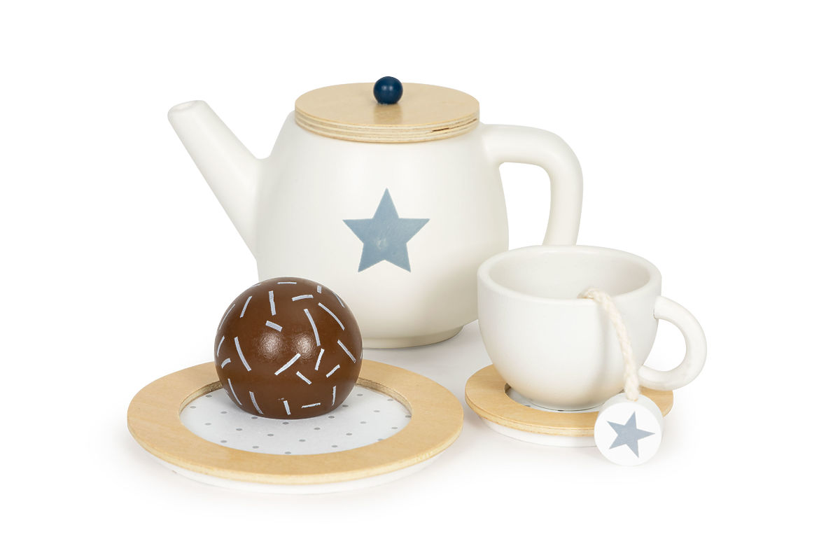 Banaby.it » Giocattoli / Cucinine / Cucinine in legno / Set da tè in legno con teiera e tazze 17 pezzi ECOTOYS
