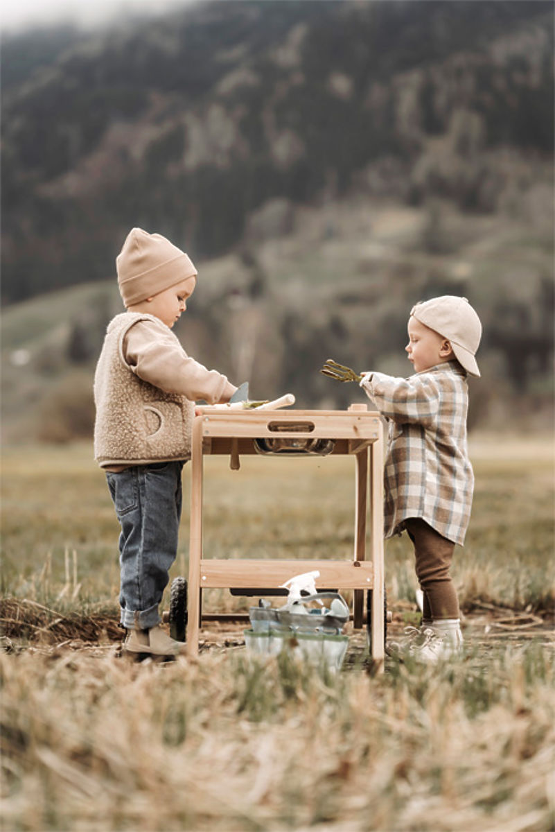Risciacquo, cottura e costruzione con acqua e sabbia! Questa cucina da gioco "estiva" per esterni è perfetta per un piccolo giardino, terrazza o balcone. .. altro