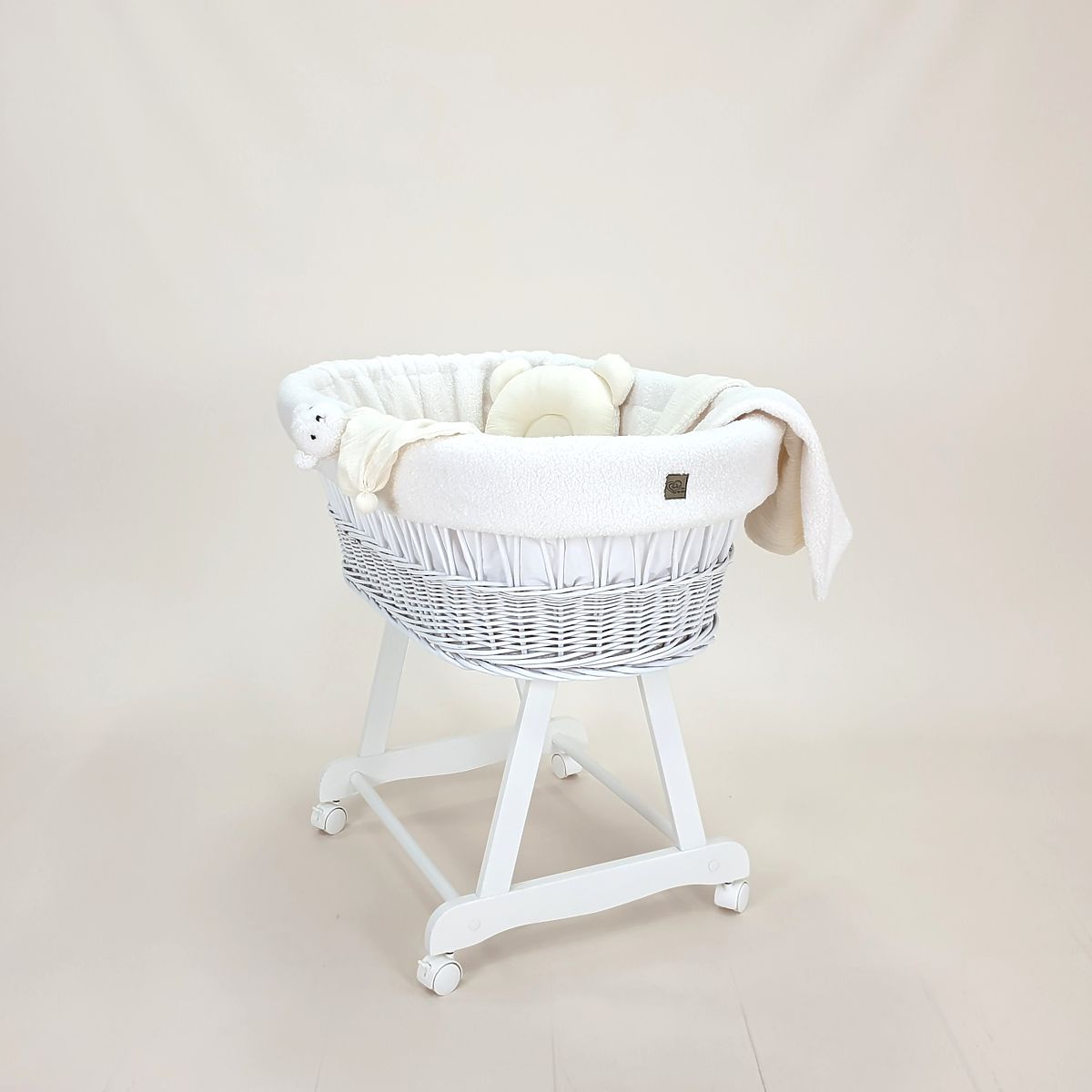 Banaby.it » Mobili per bambini / Lettini / Culle in vimini / Culla bianca in vimini Teddy per neonati - set in colore ecru