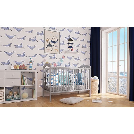 Il lettino grigio Alek è adatto per un materasso di dimensioni 120 x 60 cm. Scegli la biancheria da letto in modo che si abbini ai colori grigi. Una scelta sicura sono i colori pastello chiari e delicati.