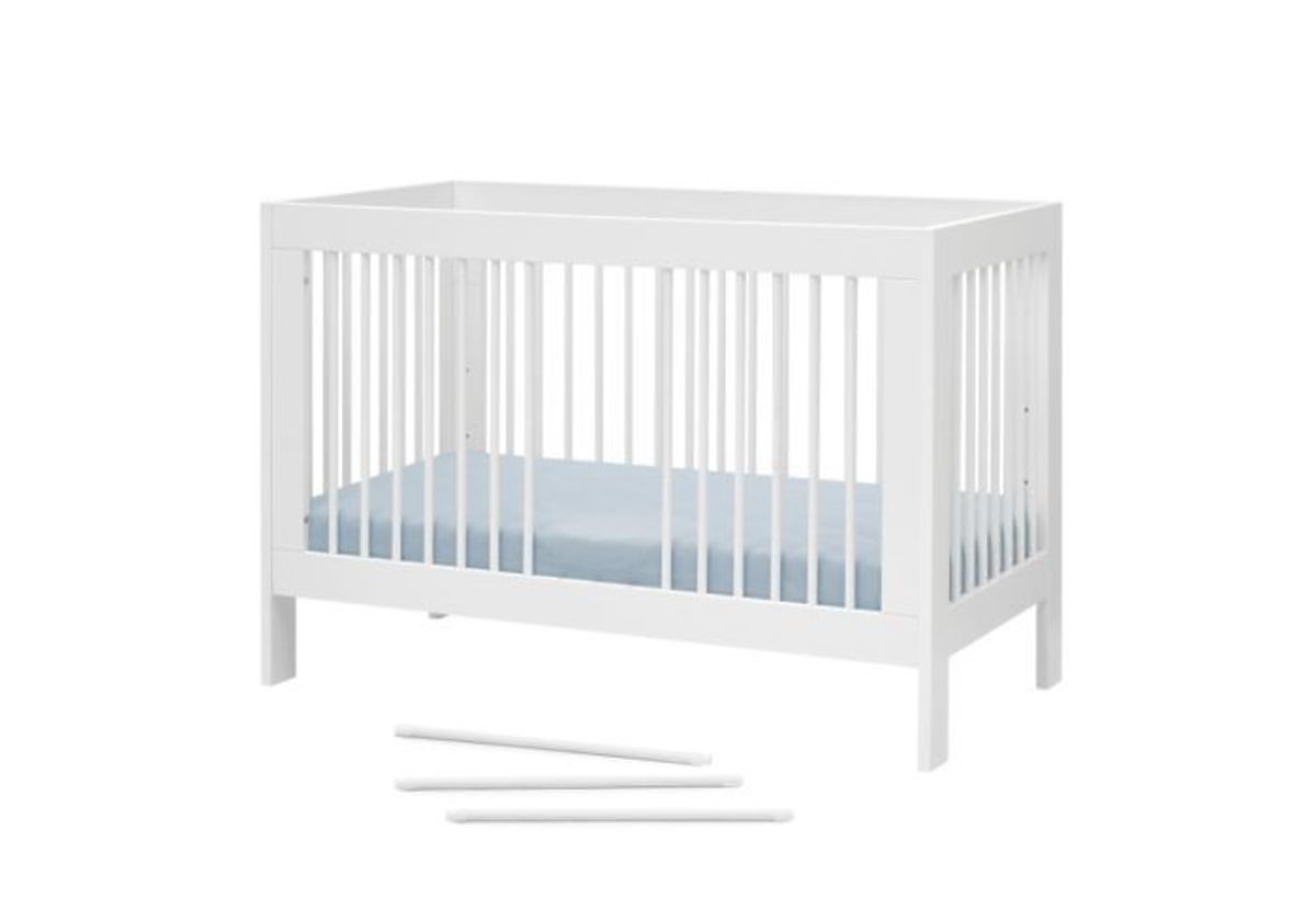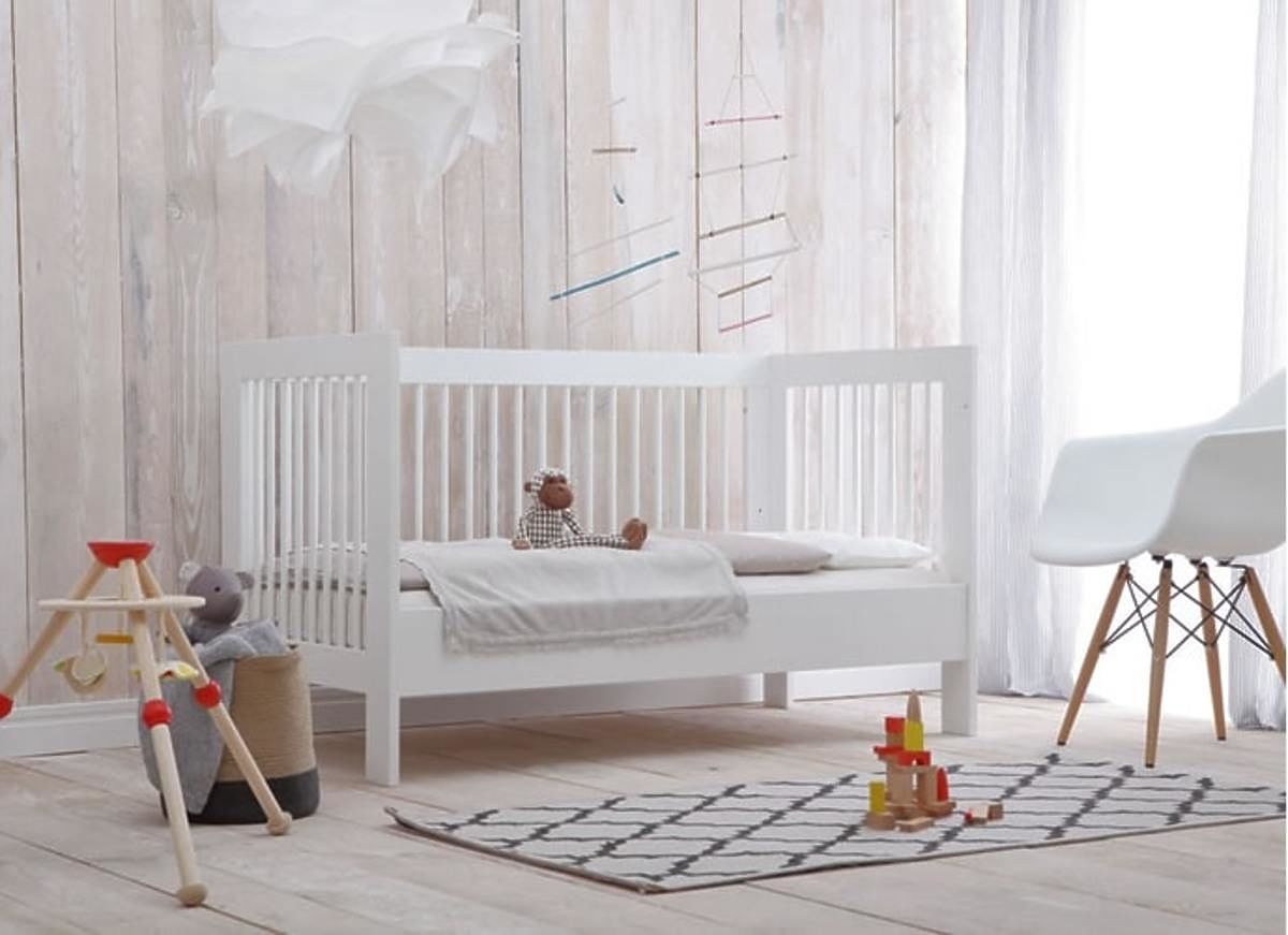 Il classico lettino per bambini 120x60 cm in bianco non è solo bello, ma anche molto pratico grazie al lato removibile.