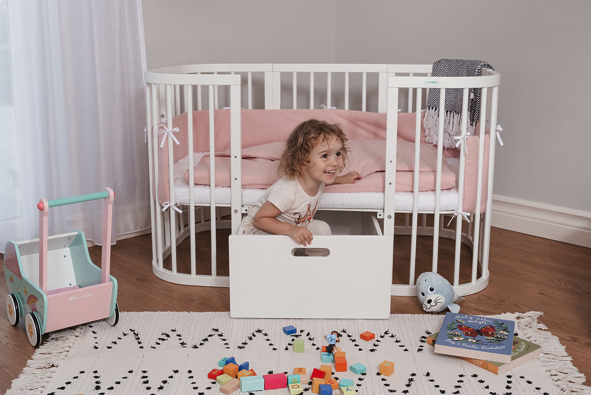 Questo lettino crescente offre 7 diverse varianti di trasformazione, che soddisfano perfettamente le esigenze dei bambini di età diverse. Una di queste è la variante molto utile del lettino accostabile al lato del letto matrimoniale, che apprezzerete soprattutto nelle prime settimane di vita del neonato.