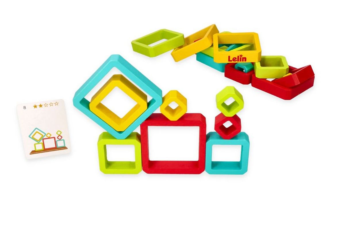 Presentiamo una novità assoluta nel nostro assortimento. I giochi di equilibrio sono presenti nel nostro negozio da molti anni, ma ciò che distingue questo prodotto è la forma degli elementi da impilare. Il gioco di equilibrio geometrico è un ottimo esercizio di destrezza per le piccole dita. Provatelo voi stessi e vedrete quanta gioia porterà costruire una struttura con questi elementi. Nonostante le apparenze, costruire la torre non sarà affatto semplice, soprattutto perché gli elementi possono essere impilati sugli angoli. E voi, genitori, metterete alla prova la vostra destrezza e coordinazione?
