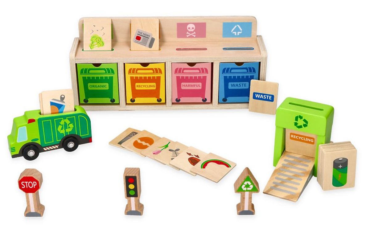 Dopo la classificazione con lo smistatore, i rifiuti devono essere caricati sul camion della spazzatura e poi collocati in uno dei contenitori sopra menzionati. Se avete un dubbio su dove collocare i rifiuti, potete sempre controllare il retro della tavoletta. Questo giocattolo educativo non è solo divertente. È soprattutto un modo per imparare a prendersi cura del nostro ambiente e del pianeta in cui viviamo. I bambini dovrebbero impararlo fin dalla tenera età.