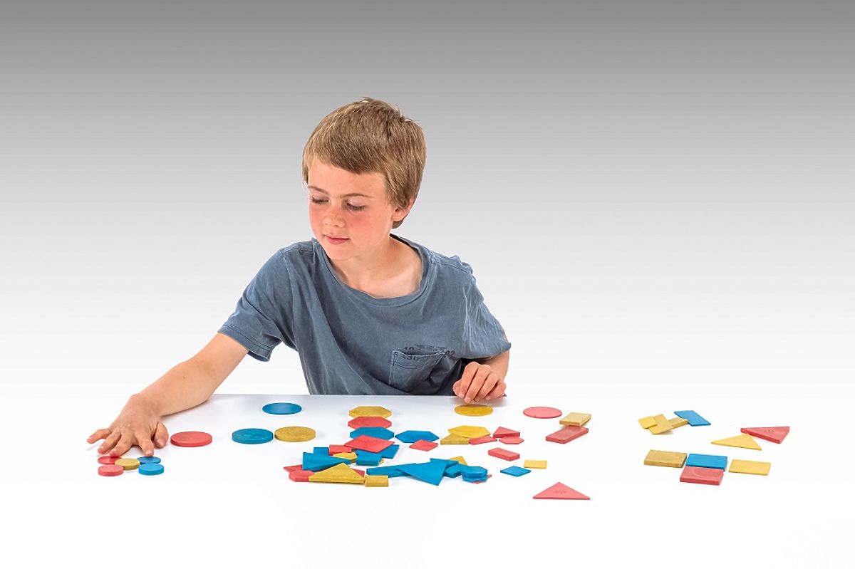 60 pezzi di forme geometriche in legno realizzate con legno riciclato, utili per giocare e imparare forme e colori. 5 forme diverse (quadrato, triangolo, rettangolo, cerchio, esagono) in 2 dimensioni (quadrato grande 5,5x5,5 cm, quadrato piccolo 3,2x3,2 cm) in 3 colori (rosso, giallo e blu) e in 2 spessori (0,2 cm e 0,6 cm). Impara a nominare e distinguere le forme geometriche. Crea modelli identici con questi blocchi logici, riconoscendoli per colore, forma, dimensione o spessore. Realizzato con materiali riciclati al 100%, è certificato PEFC e può essere riciclato nuovamente dopo l'uso. Principali caratteristiche: contiene 60 pezzi, 5 forme diverse, 2 dimensioni, 3 colori, 2 spessori, prime esperienze ludiche con la geometria, riconoscimento di forme e colori, allenamento delle abilità mnemoniche, prodotto in Germania.
