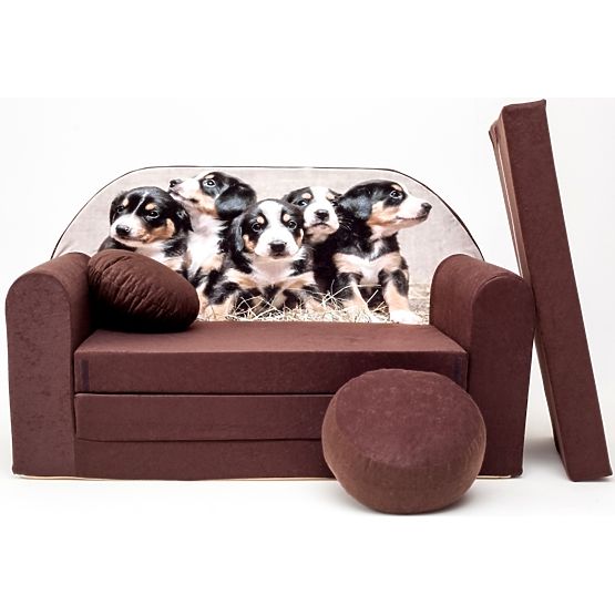 Il divano per bambini con il motivo dei cagnolini piacerà sicuramente a tutti gli amanti degli animali domestici.