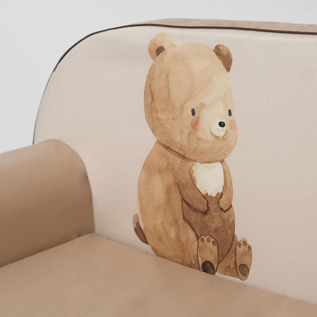 Divano letto per bambini Orsetto è un mobile adorabile e confortevole che incanta con il suo design giocoso e delicato. Il divano beige e marrone con un bellissimo motivo di orsetto è realizzato in morbida e leggera schiuma per una maggiore sicurezza e facilità di manipolazione, e il rivestimento sfoderabile è fatto di un tessuto molto piacevole e resistente che garantisce il massimo comfort per il vostro bambino.