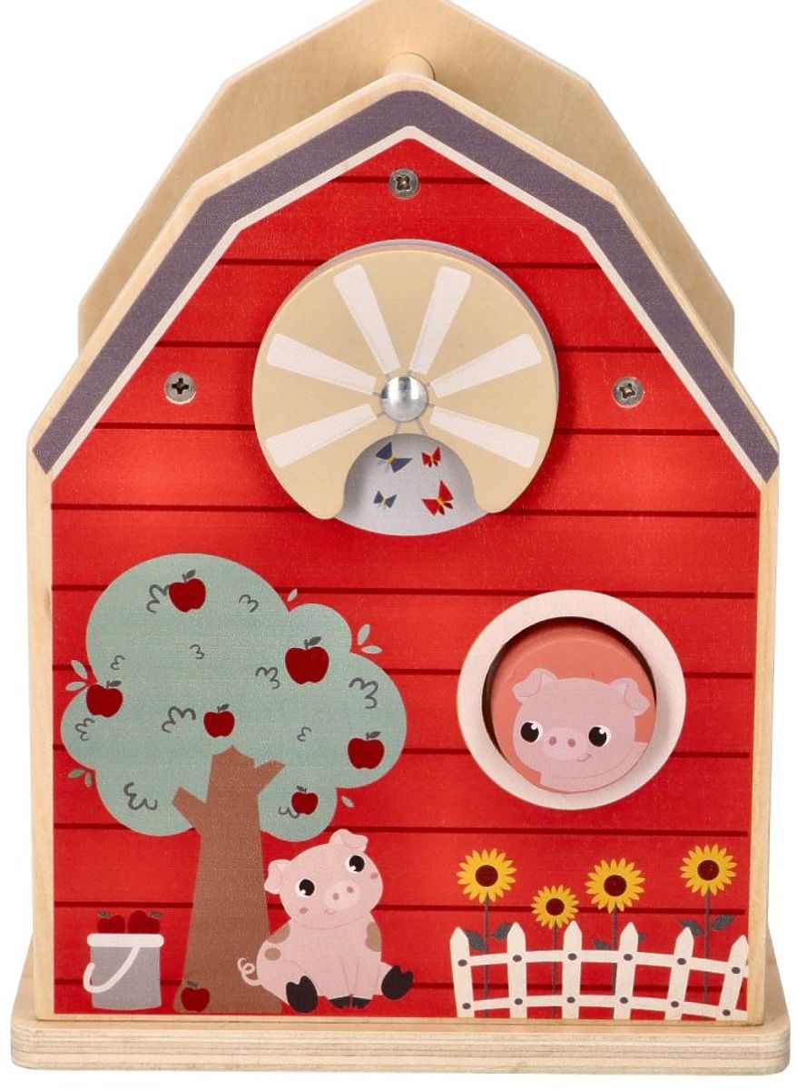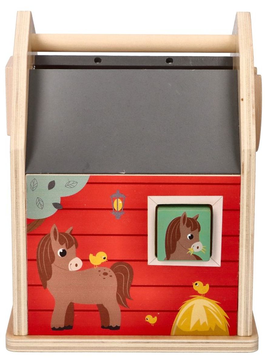 Da un lato, i bambini esercitano la coordinazione occhio-mano cercando di inserire il blocco nel foro, e dall'altro sviluppano il pensiero e le capacità di osservazione. Grazie alle diverse forme e colori dei blocchi, imparano a distinguerli e acquisiscono conoscenze sul mondo circostante e sulle differenze tra gli elementi. Inoltre, qui conoscono gli animali che vivono in questa bellissima fattoria.