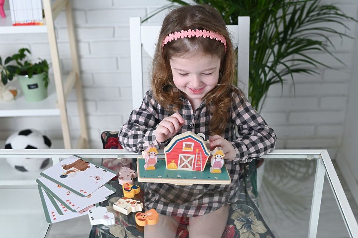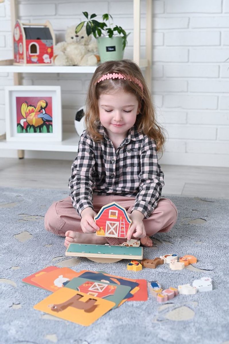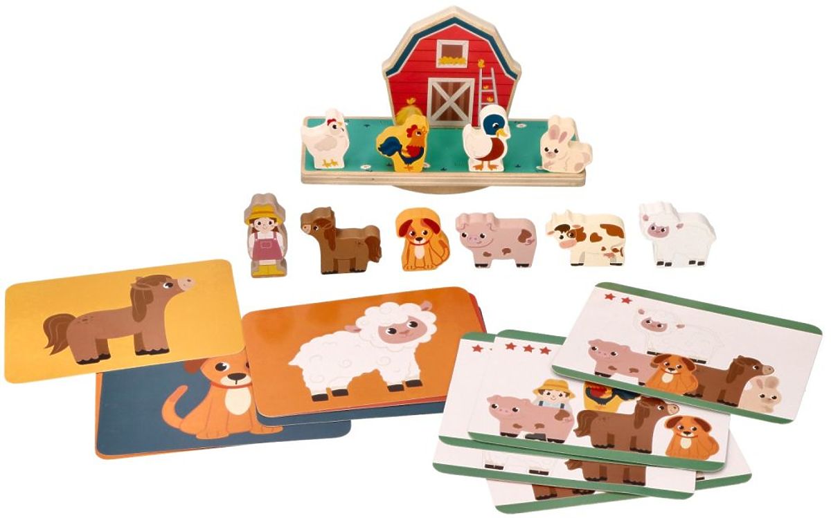 Gli adorabili animali della fattoria garantiranno al tuo bambino tanto divertimento, ma gli insegneranno anche molte abilità preziose! La bellissima fattoria in legno con animali allegri è un gioco di abilità e un puzzle in uno.