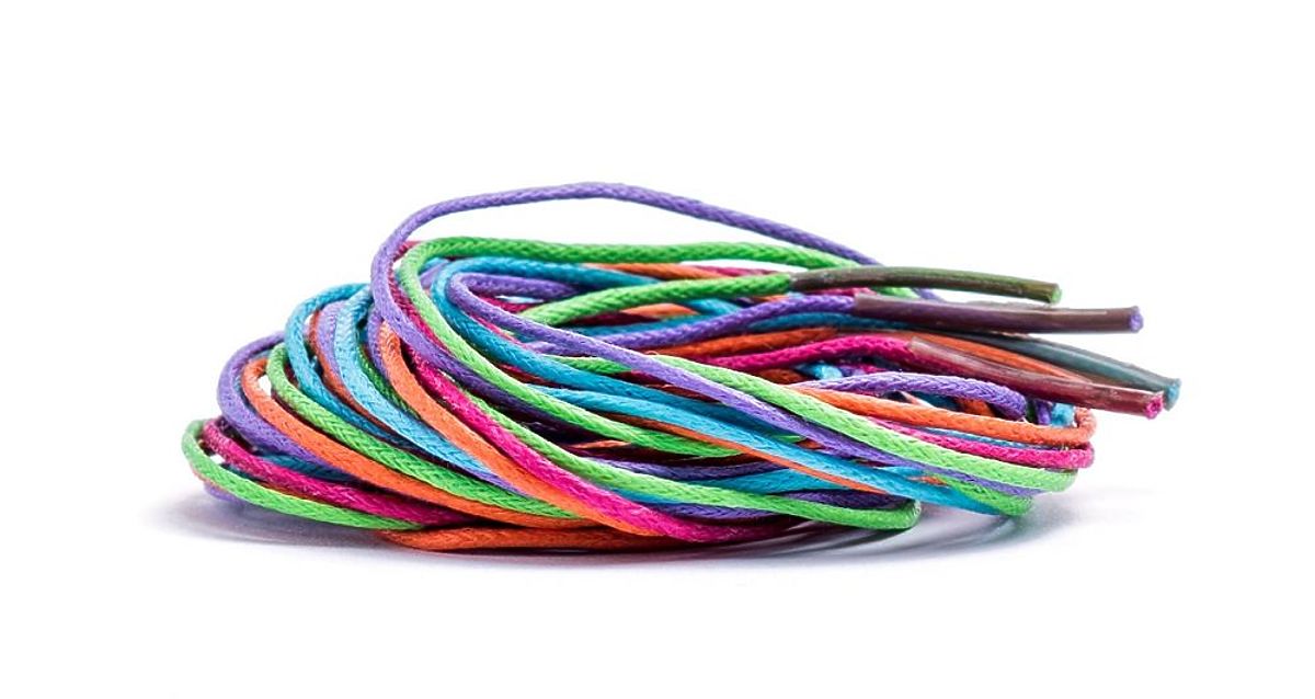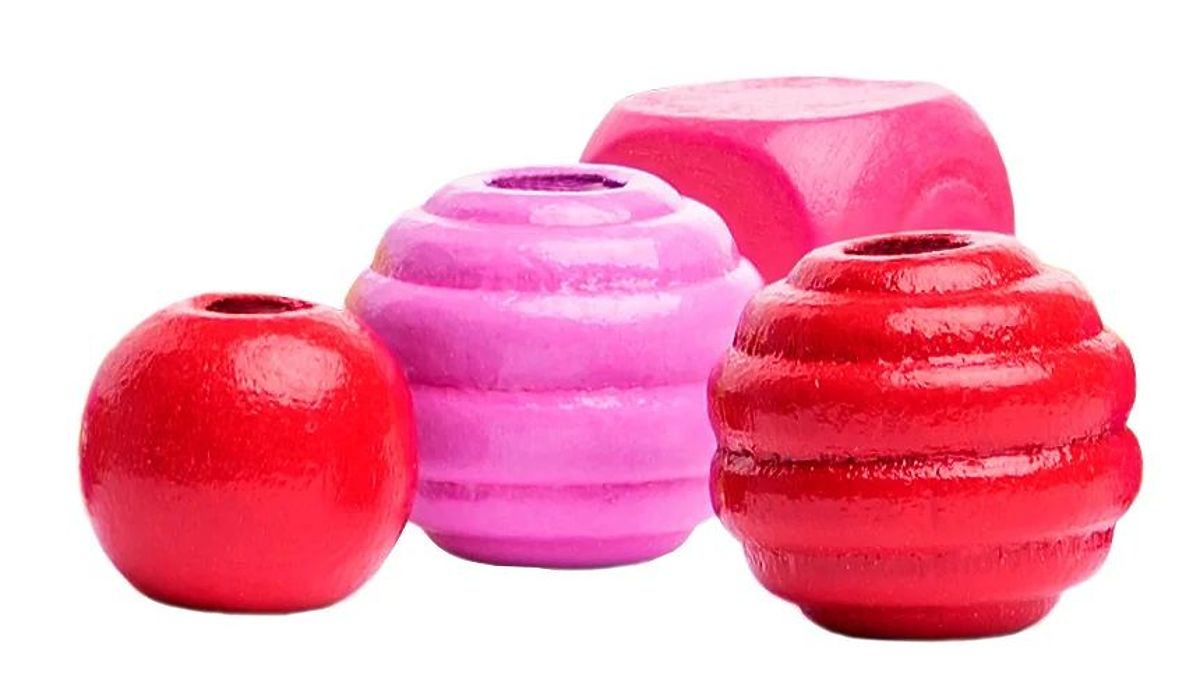 Le perline sono realizzate in legno laccato nei colori rosa, giallo, arancione e rosso.