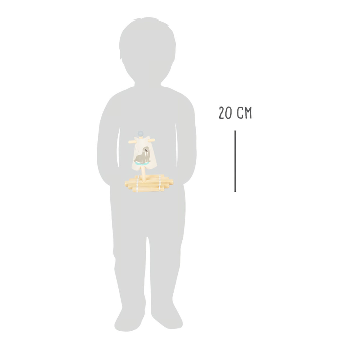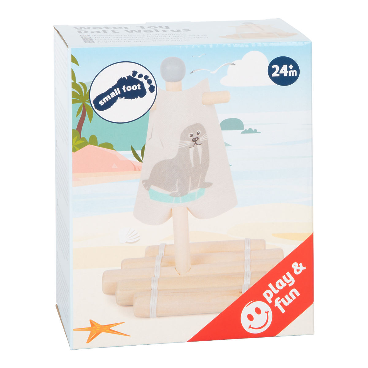 Giocattolo da bagno - zattera tricheco. Ciao, capitano! Questa zattera in legno è perfetta per i piccoli marinai. Possono spingerla sull'acqua e godersi ogni bagno! Che sia nella vasca, in piscina o al mare – quando questo giocattolo entra in acqua, nulla può fermarlo. I giocattoli d'acqua realizzati in legno sono un'alternativa più ecologica ai giocattoli in plastica e gomma. Per una maggiore durata del giocattolo, asciugatelo bene dopo averlo tolto dall'acqua. Principali caratteristiche: utilizzo nella vasca, in piscina o al mare, il gioco stimola la fantasia, durante la navigazione in natura è spinto dal vento.