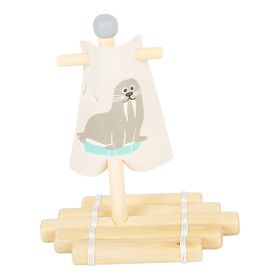 Giocattolo da bagno - zattera tricheco. Ciao, capitano! Questa zattera in legno è perfetta per i piccoli marinai. Possono spingerla sull'acqua e godersi ogni .. altro