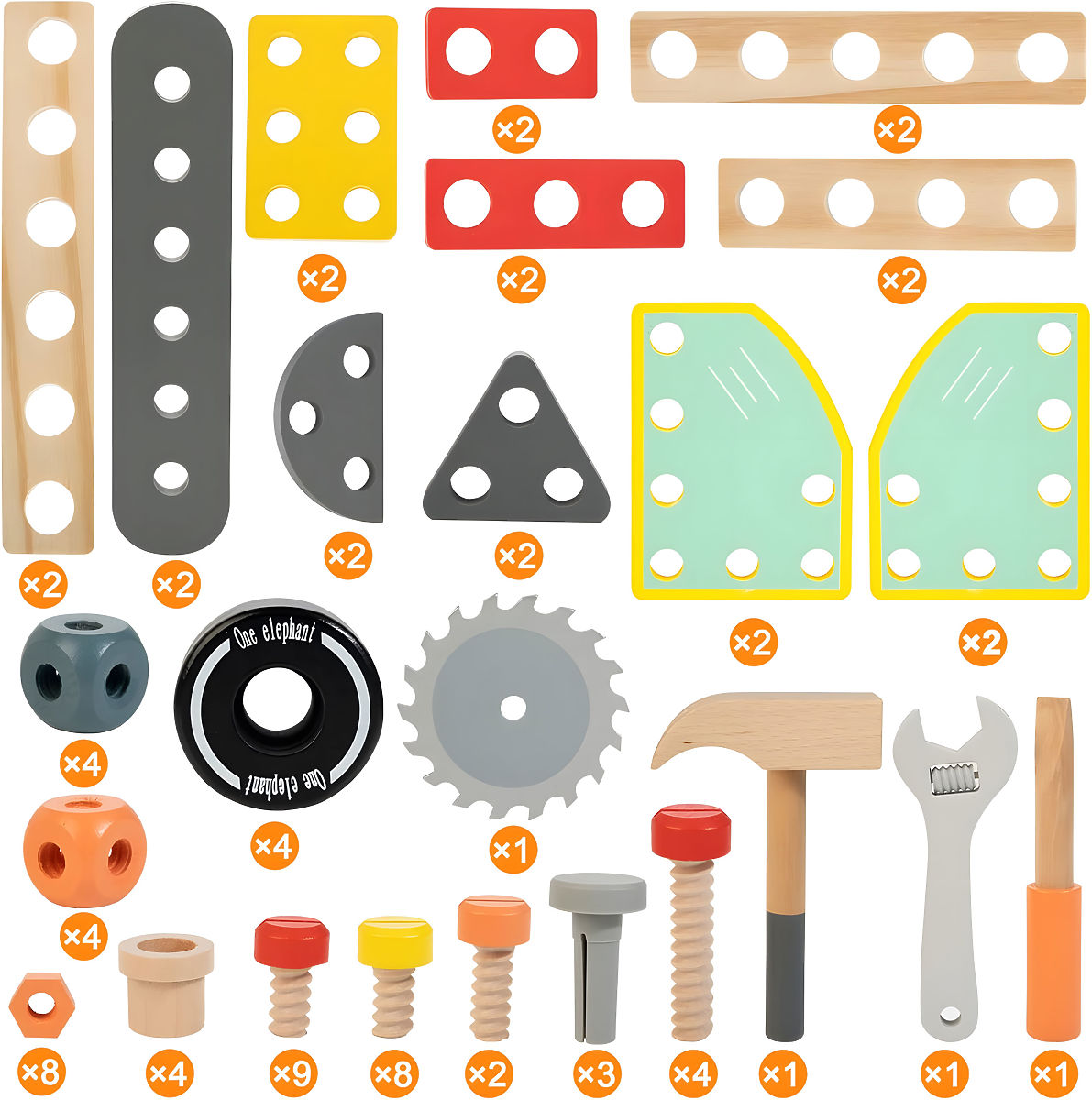 SVILUPPO E DIVERTIMENTO IN UNOL'uso degli attrezzi e l'assemblaggio dei blocchi sviluppa nei bambini le abilità motorie, la coordinazione mano-occhio, le capacità di risoluzione dei problemi e stimola anche la loro immaginazione e creatività. È un eccellente giocattolo che supporta in sicurezza lo sviluppo dei piccoli artigiani.