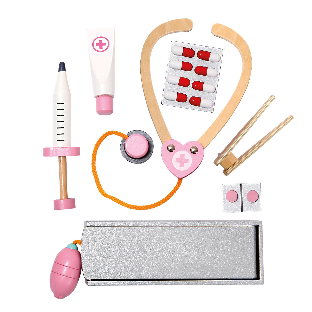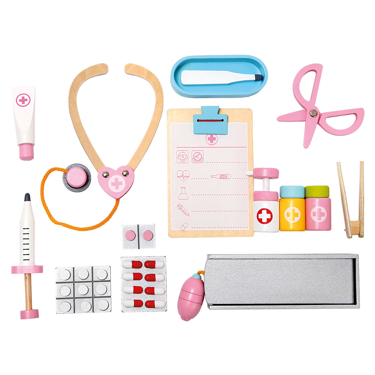 Valigetta medica in legno per piccoli dottori. Ideale per giochi che intratterranno i bambini a lungo. Possono esplorare il mondo degli adulti e divertirsi moltissimo. I bambini possono facilmente aprire la valigetta, estrarre gli strumenti medici necessari e riporli nuovamente dopo il gioco. L'ampio set di 16 pezzi è ben assicurato con ampi elastici. Attraverso il gioco, allenano le abilità linguistiche, la motricità fine e stimolano la loro immaginazione. Il divertimento dei bambini aiuta a ridurre la paura e le preoccupazioni della visita dal medico. Avvertenza: Uso da parte di bambini sotto i 3 anni solo sotto la supervisione di un adulto. Caratteristiche principali: ampio set di 16 pezzi, i bambini allenano la motricità fine durante il gioco, stimolano l'immaginazione, aiuta a ridurre la paura e le preoccupazioni della visita dal medico, adatto per bambini dai 3 anni in su.