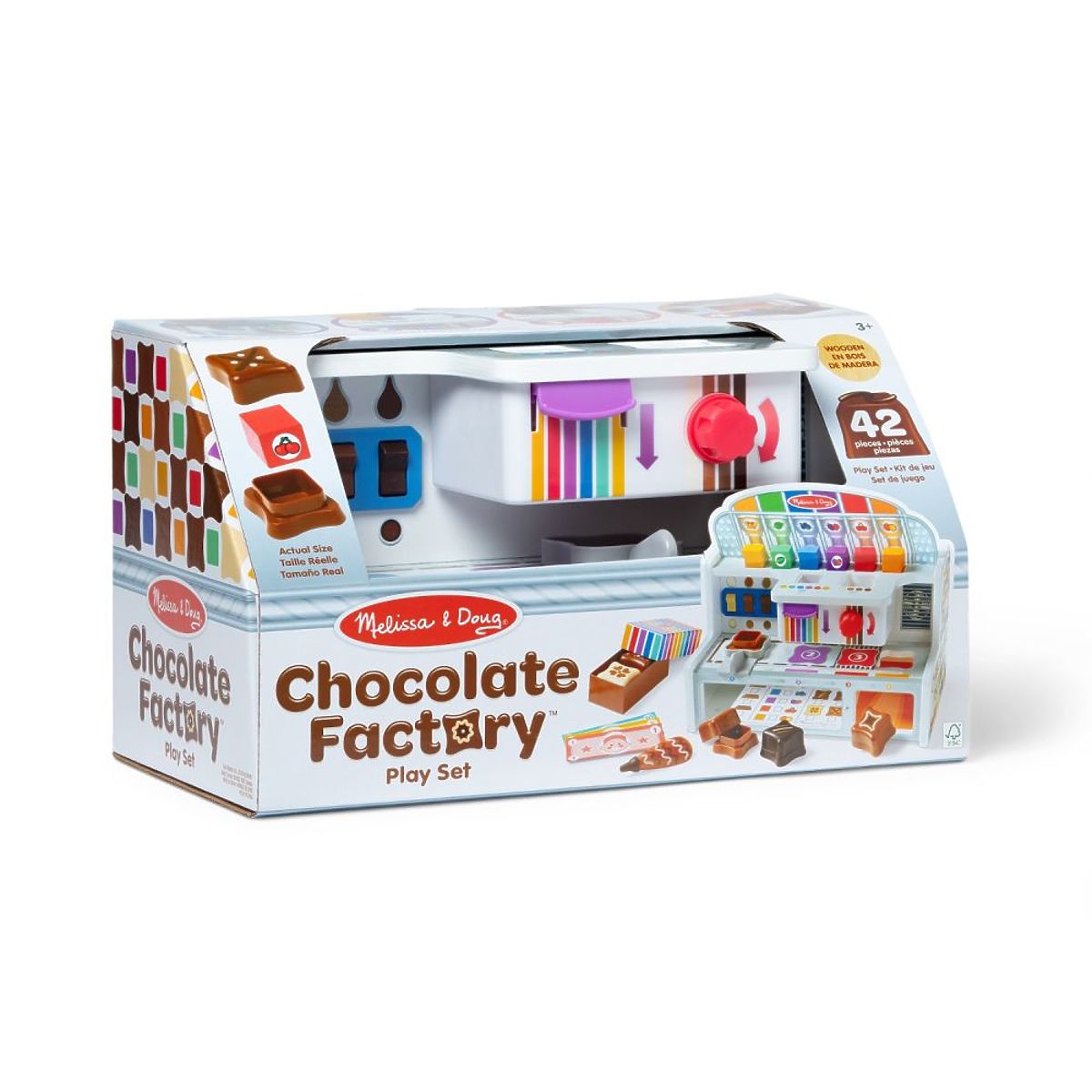 Biscotto con ripieno di lampone e copertura al caramello..., o forse una noce nel cioccolato bianco. Le possibilità sono molte, così come la varietà di sapori nella fantastica novità di Melissa & Doug - la Fabbrica di Cioccolato. Tutti amiamo i dolci - sia i bambini che noi adulti. Anche se dovremmo limitare la quantità di zuccheri consumati sotto forma di cioccolato, con la nostra Choco-Fabbrica non dovete preoccuparvi né delle calorie né del disordine. Il set include tutto il necessario per un grande divertimento nei giochi di ruolo.