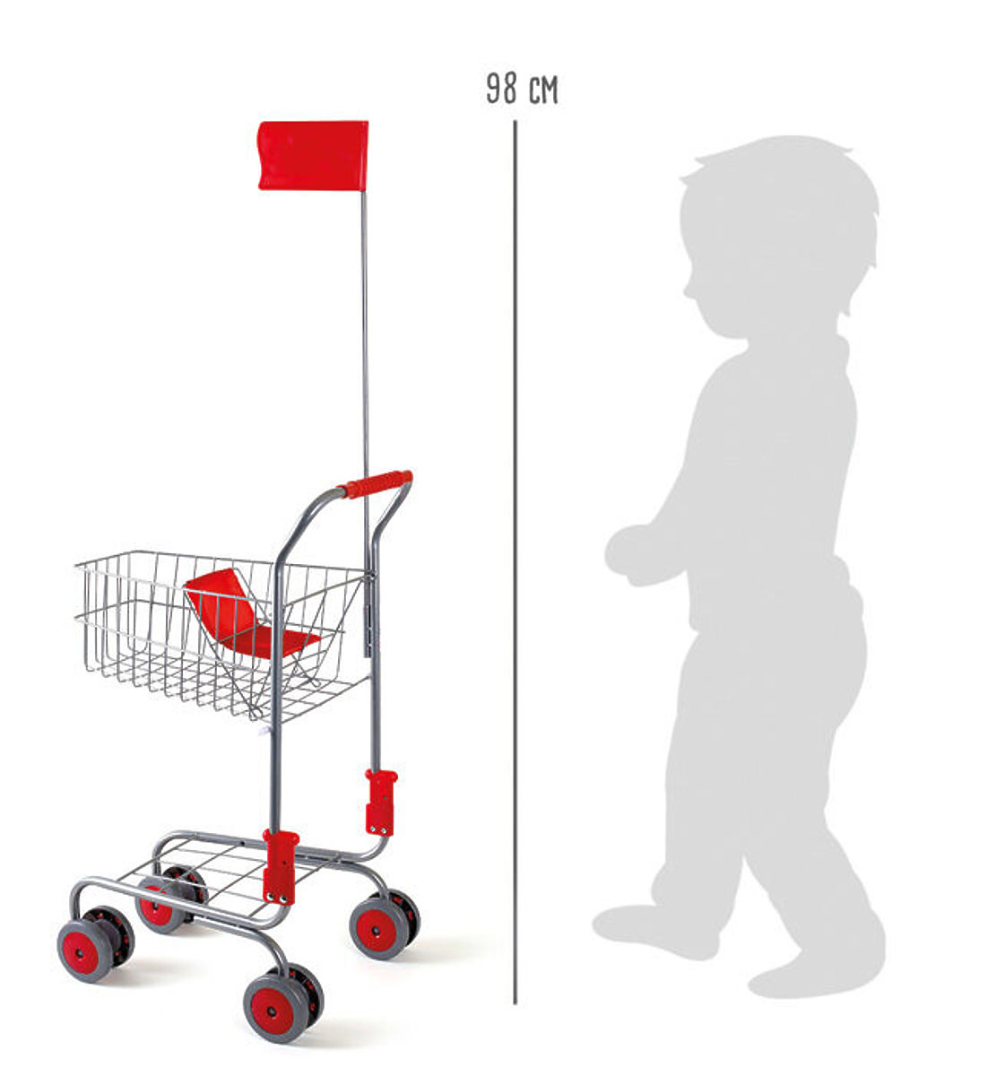 Confezione danneggiata. Prodotto nuovo senza difetti. Con questo carrello della spesa, fare la spesa sarà molto divertente per i bambini. Grazie al design argentato di questo classico carrello della spesa, farete un'ottima impressione sui giovani acquirenti. È dotato di accenti rossi sulle ruote, sul manico, sul telaio, con una bandiera rossa e anche un sedile pieghevole per le bambole. Le ruote anteriori possono ruotare di 360 gradi, rendendo questo carrello della spesa facile da manovrare. Con questo carrello, anche i bambini più piccoli possono imitare i loro genitori e andare a fare la spesa come gli adulti. Il cestino offre ampio spazio per riporre cibo e giocattoli, quindi è un complemento perfetto per i negozi di gioco. Caratteristiche principali: ruote anteriori che ruotano di 360 gradi, altezza del manico 60 cm, facile da manovrare