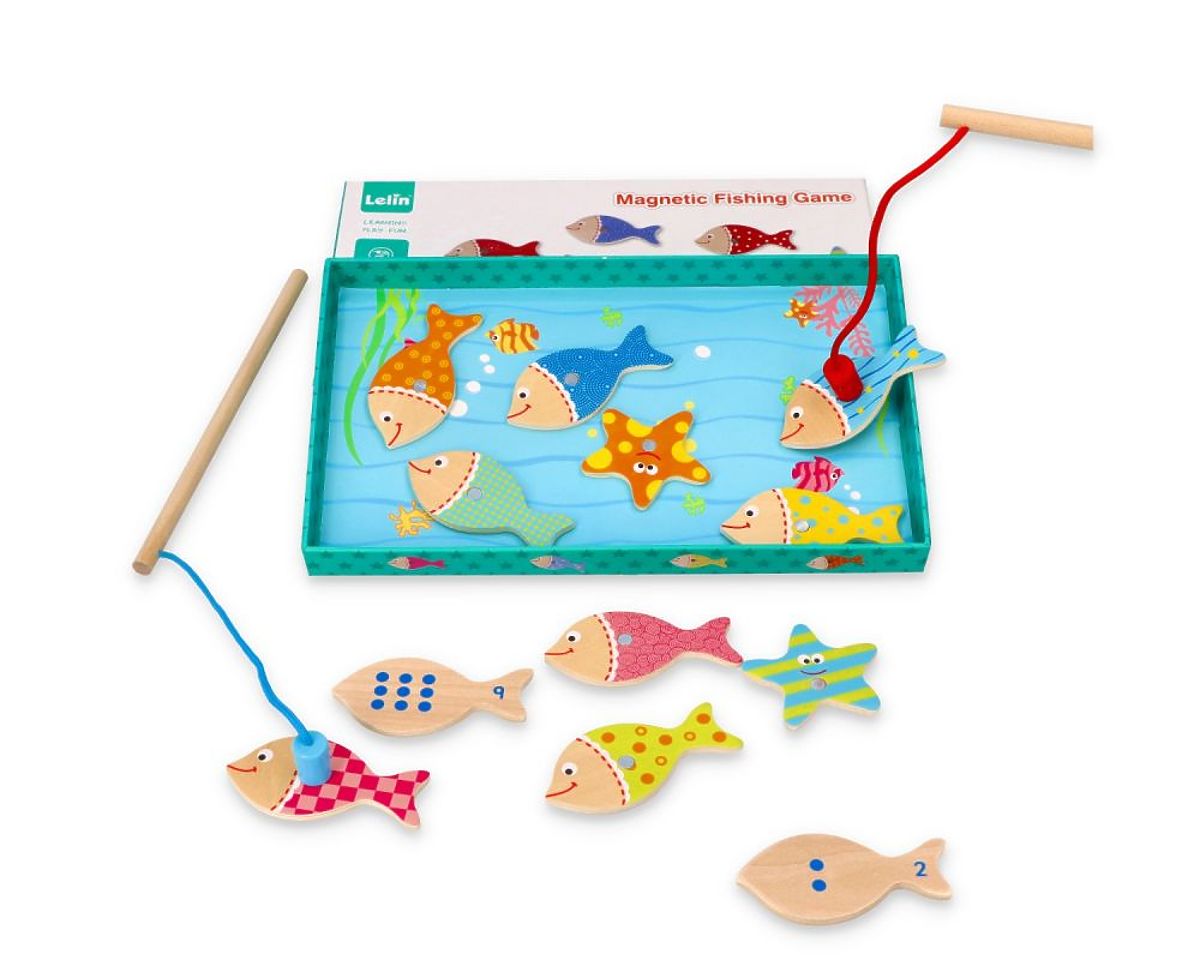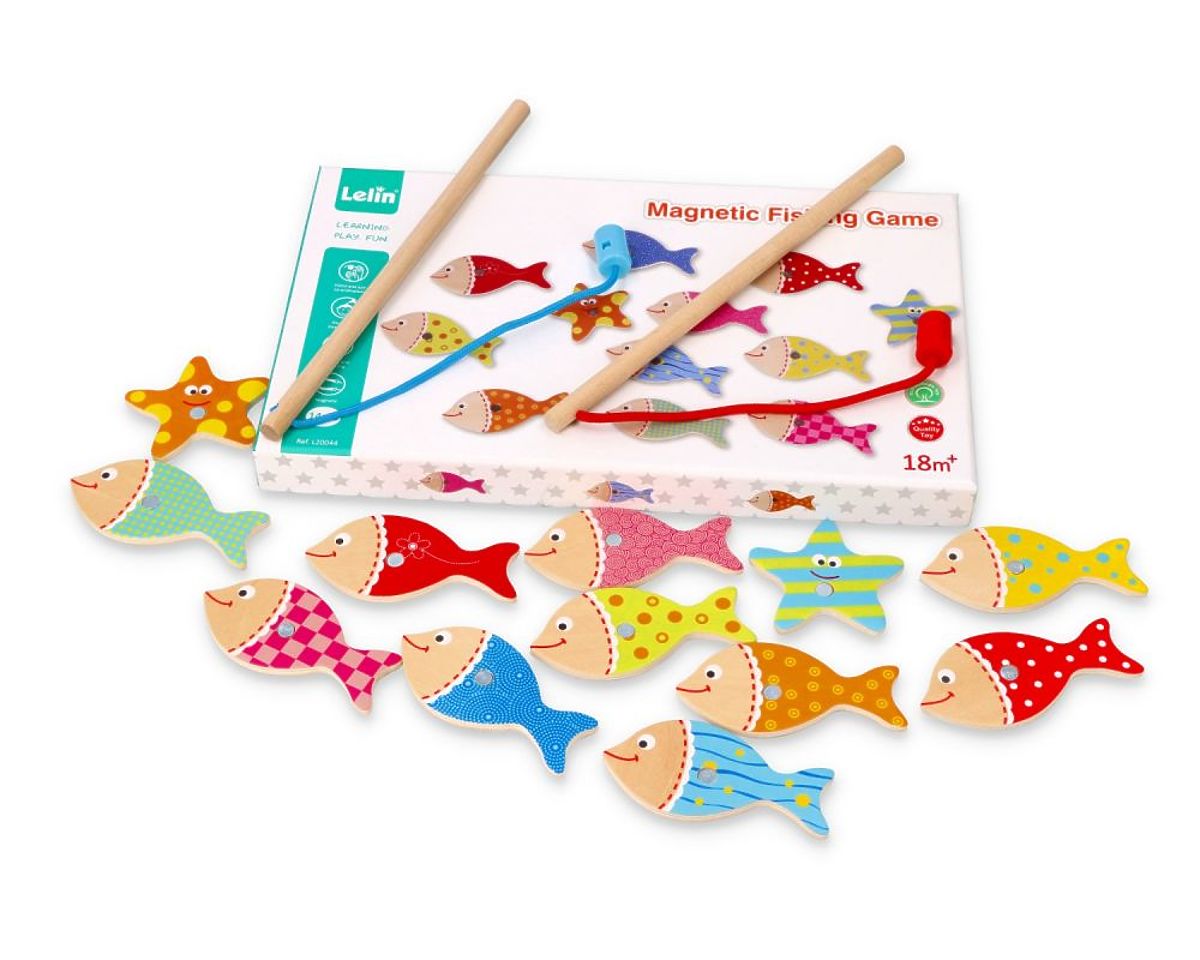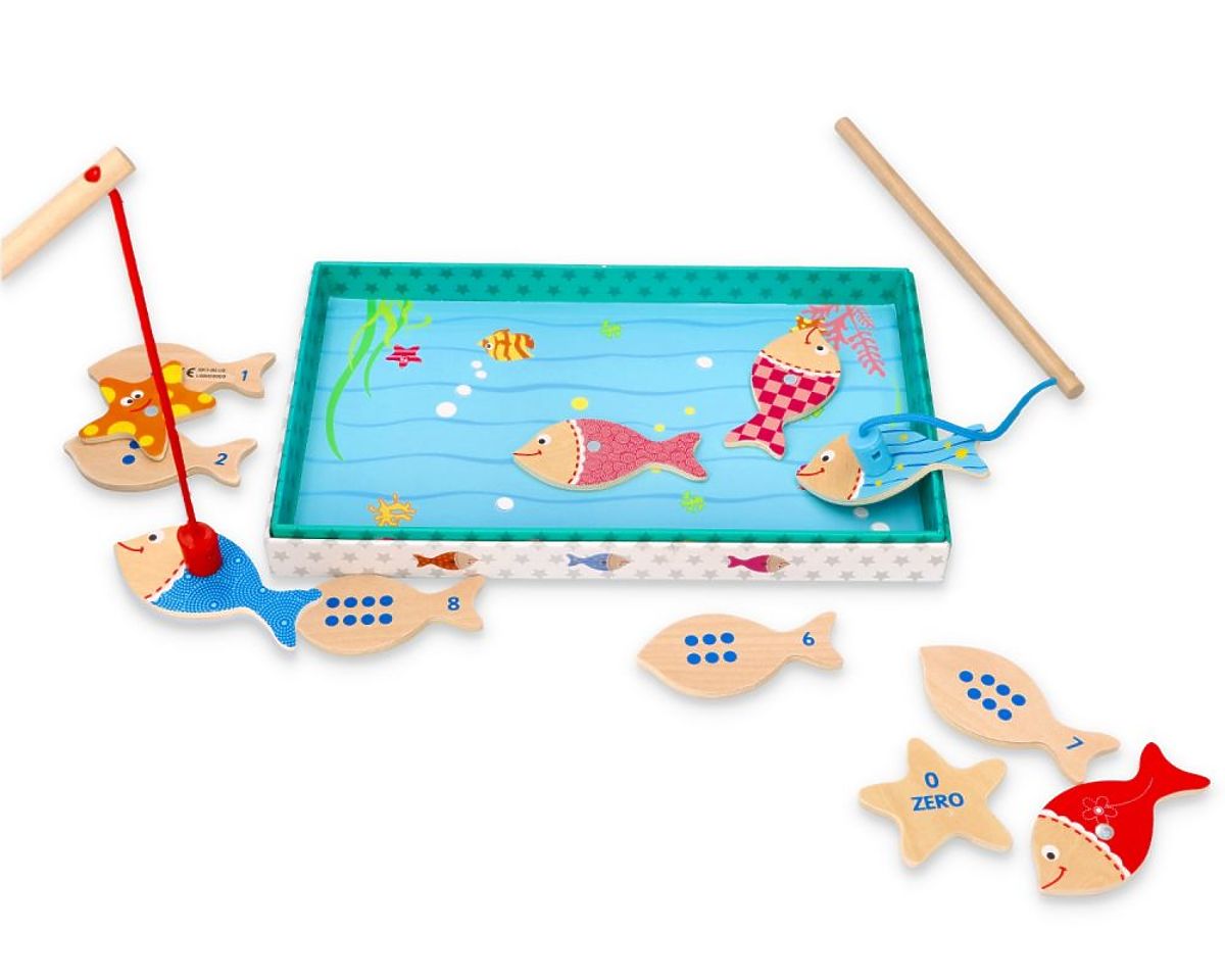 Un gioco semplice e piacevole per tutta la famiglia. Ogni giocatore è dotato della propria canna da pesca con un magnete all'estremità, da lanciare per catturare i pesciolini. Ogni pesciolino ha un numero sul retro che corrisponde al punteggio del pescato. Ci si può divertire in due modi: chi cattura più pesciolini o chi ottiene più punti. Grazie ai punti, il bambino può anche migliorare le sue capacità di calcolo.