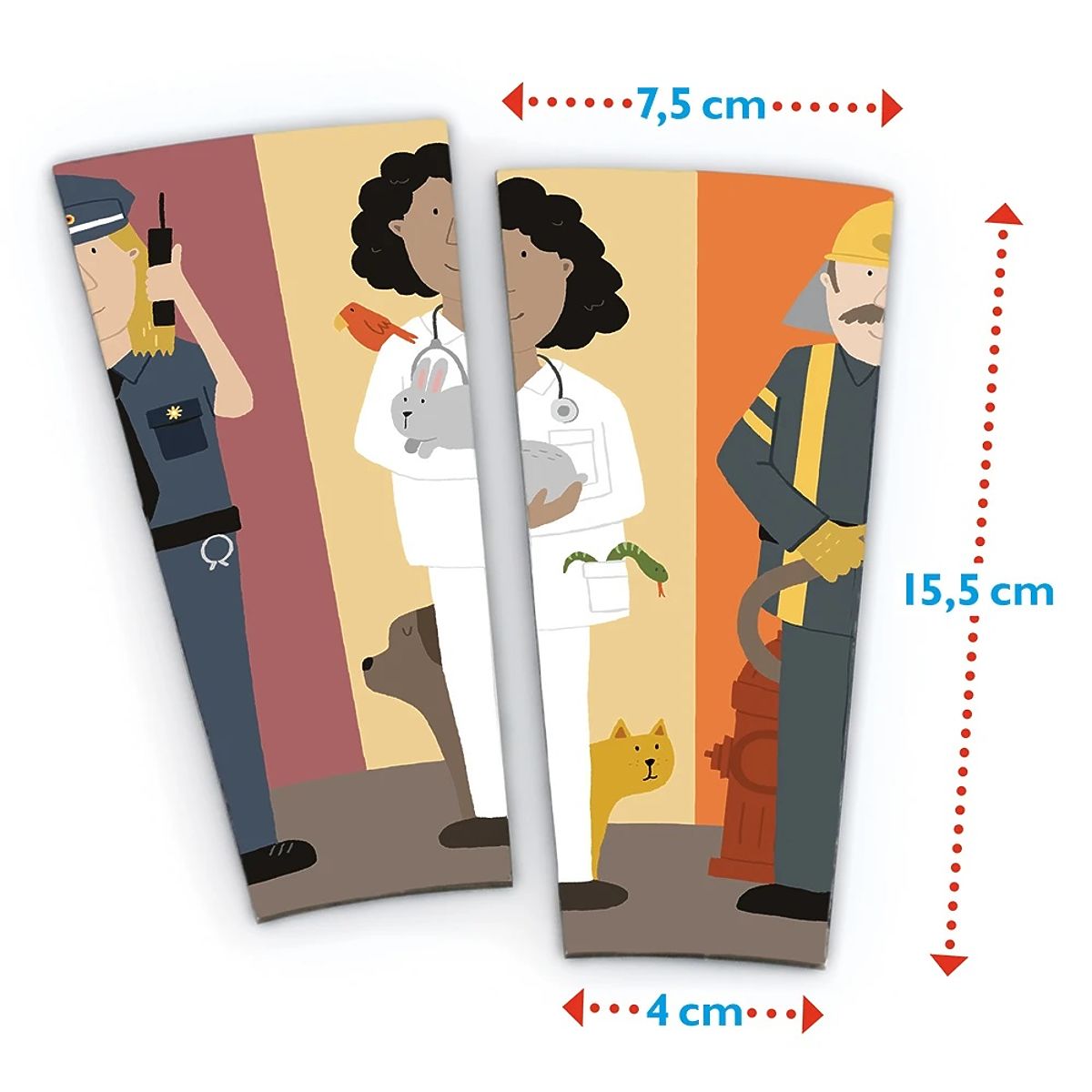 Cosa si abbina insieme? Può un pompiere essere posizionato accanto a un giardiniere? Dove trova il veterinario il suo posto? E dove si adattano meglio la poliziotta e l'operaio edile? In questo gioco di posizionamento circolare, sono particolarmente richieste abilità combinatorie. Chi posiziona per primo tutte le sue carte, vince! Principali caratteristiche: sviluppa concentrazione e pensiero combinatorio, migliora destrezza e riflessi