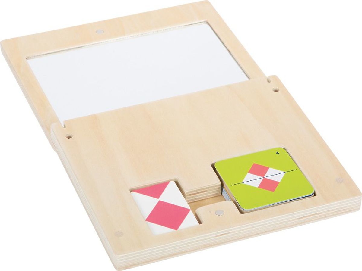 Il set include 32 carte fronte-retro con modelli da assemblare utilizzando le forme disponibili e il riflesso nello specchio. Non lasciarti ingannare dalla semplicità del giocattolo, perché anche gli adulti devono riflettere un po' prima di trovare la soluzione giusta. Inoltre, le carte sono suddivise in 4 livelli di difficoltà, con 16 immagini per ciascun livello.