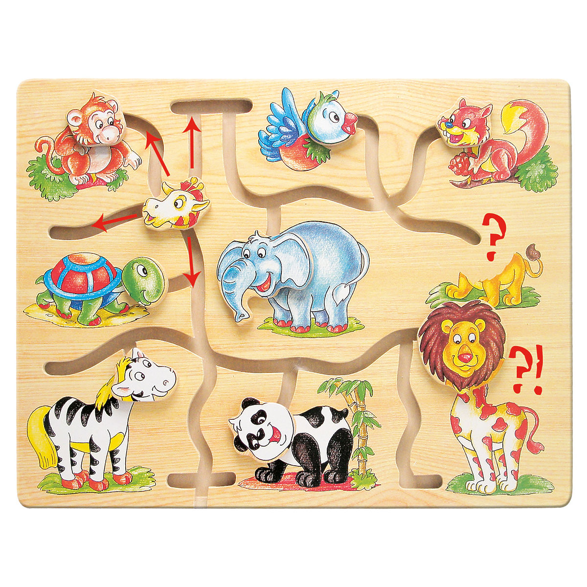 Labirinto motorico in legno per abbinare teste di animali. .. altro