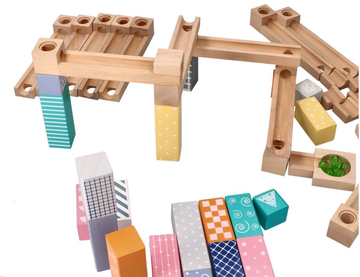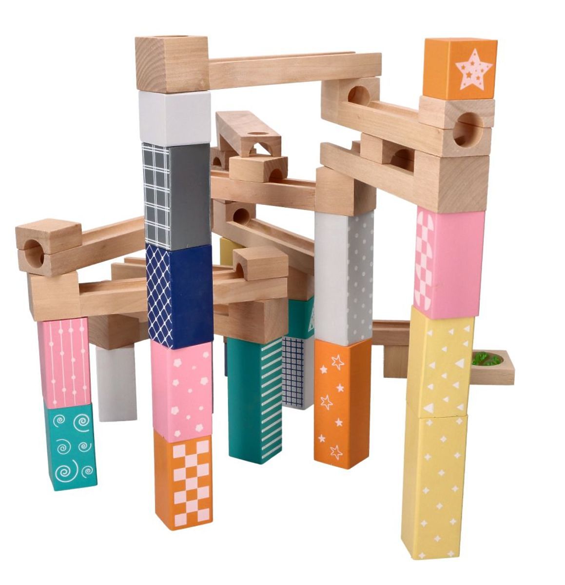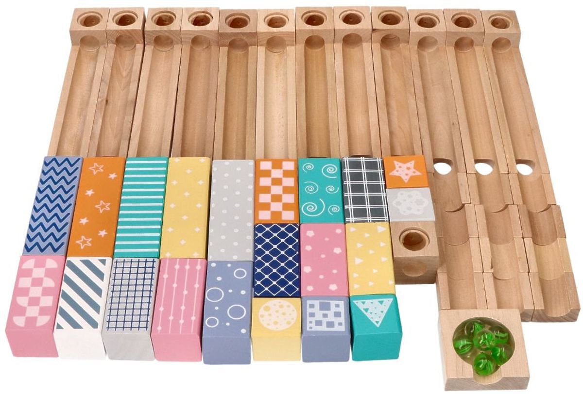 Banaby.it » Blocchi per costruzioni / Blocchi di legno per costruzioni / Pista di biglie in legno pastello 53 pezzi