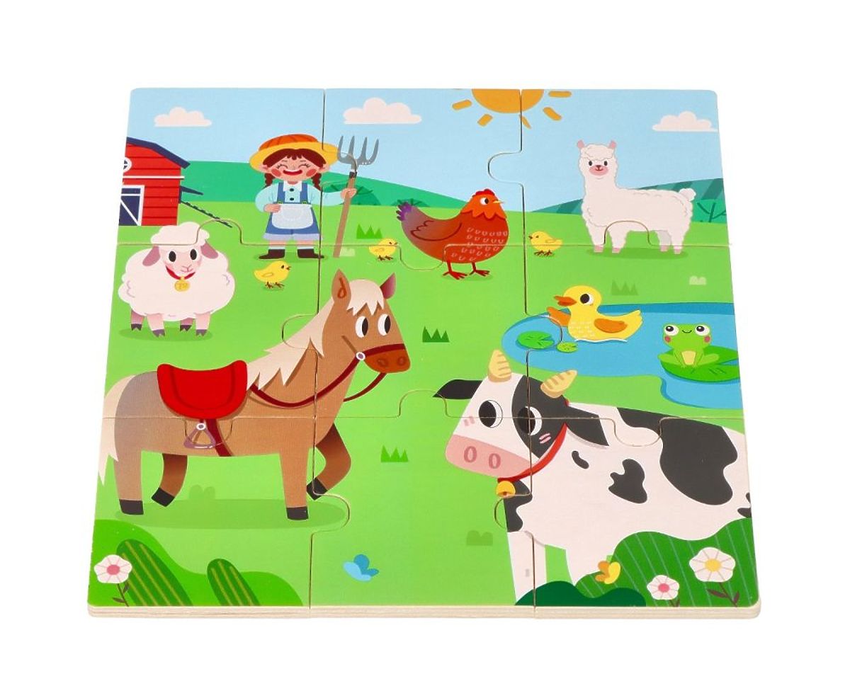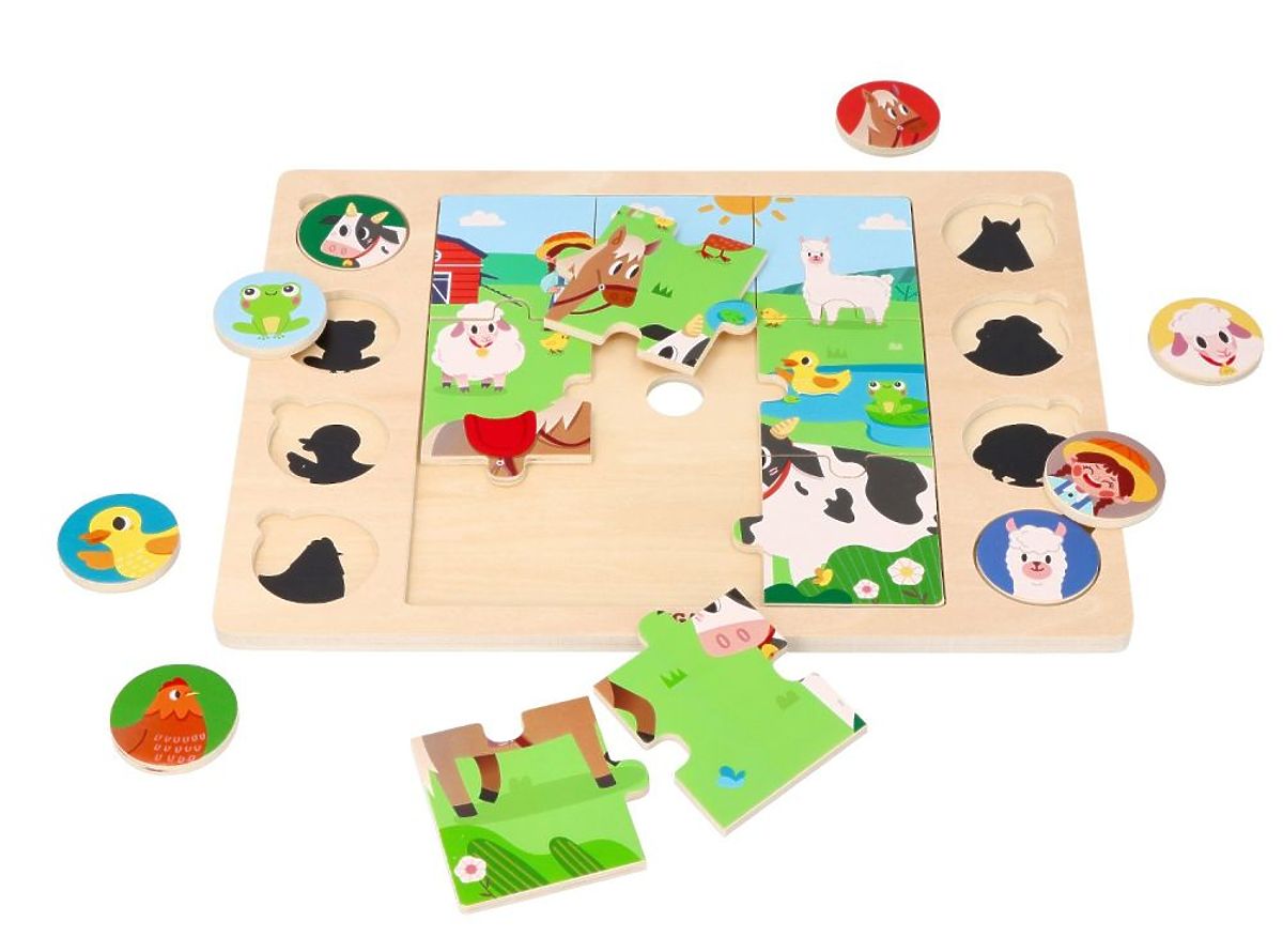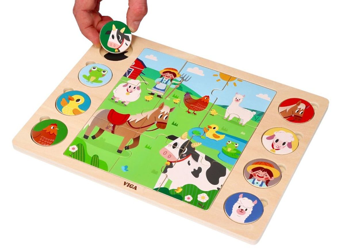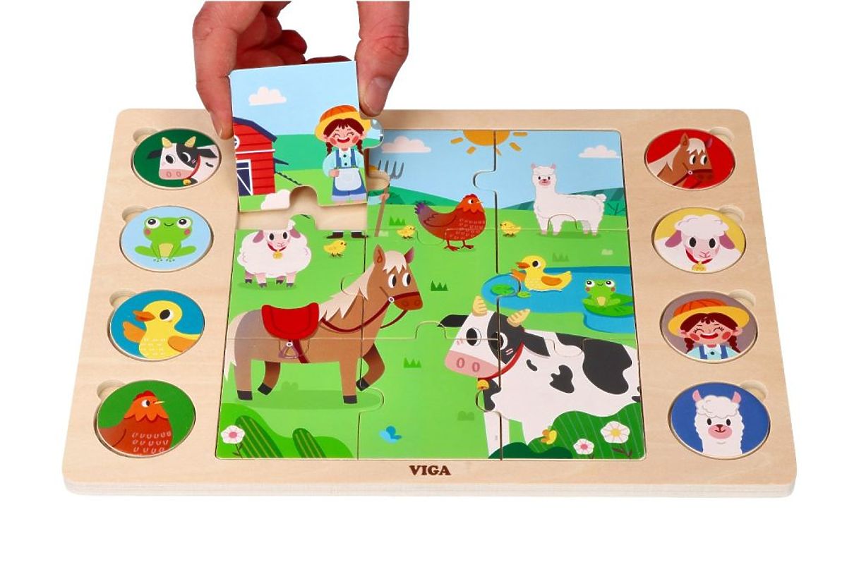 Un puzzle 2 in 1 molto interessante che introduce il bambino ai simpatici animali della fattoria. Questo set eccezionale non è solo un grande divertimento, ma anche uno strumento educativo che supporta lo sviluppo del bambino in modo molto ponderato.