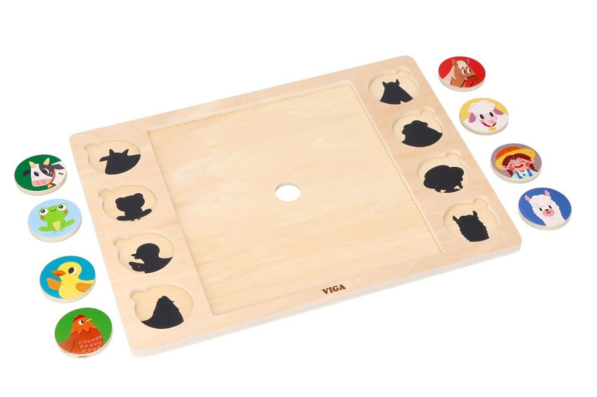Il gioco dovrebbe iniziare con l'assemblaggio del puzzle di 9 pezzi posizionato al centro. Successivamente, il bambino può abbinare 8 puzzle rotondi alle ombre corrispondenti sulla tavola. Questo compito sviluppa abilità manuali e coordinazione, ma anche il pensiero logico. Dopo aver abbinato correttamente tutti gli elementi, il bambino può nominare i singoli animali e trovarli nella grande immagine composta. È un eccellente modo per sviluppare il vocabolario e costruire capacità di pensiero logico.