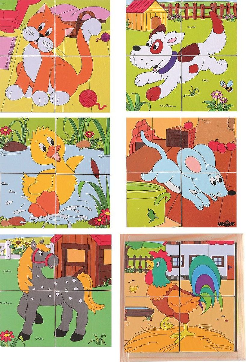 Dai cubi si possono comporre 6 immagini che rappresentano animali di campagna. Il set include 4 cubi con frammenti di immagini delle dimensioni di 5 x 5 x 5 cm e una scatola di legno. Età: 2+ Numero di riferimento: WD90922 Dichiarazione di conformità CE