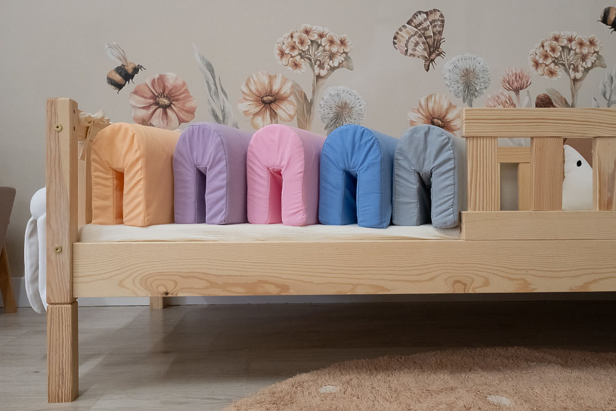 Morbido, sicuro e bello. Questo è il celeste paracolpi per letto Ourbaby, un ottimo complemento per ogni cameretta. Il paracolpi è realizzato in schiuma di poliuretano di alta qualità e il rivestimento è in morbido e piacevole tessuto Jersey. È disponibile in tre dimensioni, adattandosi perfettamente a letti di ogni misura.