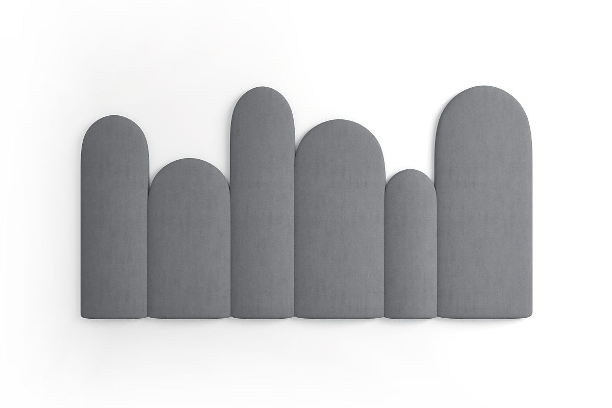 Set di pannelli imbottiti è una soluzione originale per ravvivare la camera dei bambini o la camera da letto. Include 6 moduli con bordo superiore arrotondato che ricorda una staccionata, che possono essere combinati liberamente per creare la propria disposizione sulla parete. I pannelli sono realizzati con un'attenzione particolare alla qualità, sicurezza e comfort. La finitura grigia appare universale e si combina facilmente con altri mobili e accessori.